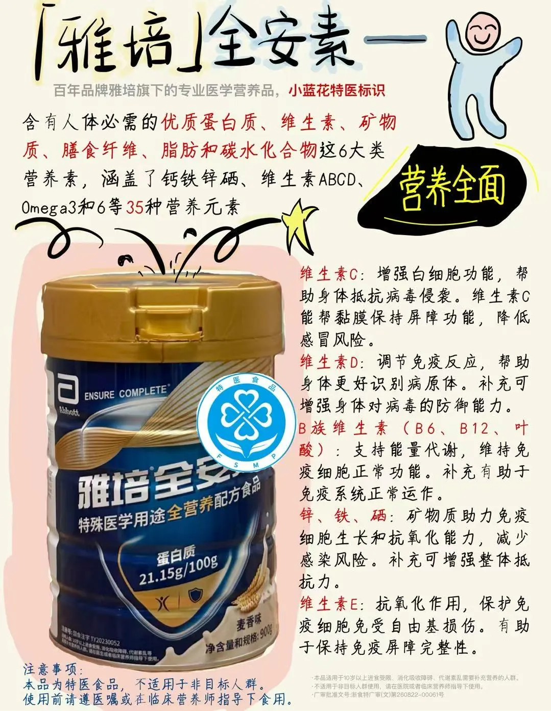 首先雅培全安素是百年品牌雅培旗下的特医食品,有小蓝花标识,品质有保障。