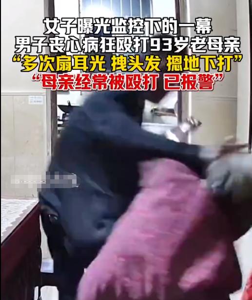 监控里的画面看得人牙痒痒!男子对着93岁老母亲多次扇耳光、拽头发、摁在地上打,老人哭喊求饶却挡不住施暴者的拳头——这哪里是儿子,这分明是披着人皮的恶魔! 这场突破人伦底线的暴行,不仅撕碎了“养儿防老”的神话,更逼我们追问:对虐待老人的恶魔,法律怎能轻饶? 综合中安在线等媒体报道,男子殴打93岁母亲被曝光。通过网传视频,我们可以看到,男子与一名白发苍苍的老人发生口角,过程中,直接扇了老人一巴掌,把老人打得捂住脸、痛哭不止! 怎料,男子随后并没有停手,又拽着老人的头发,狠狠朝老人脸上扇打数下。老人随后一边捂住脸哭,一边起身步履蹒跚躲进厨房。万万没想到,到此,男子依旧没有停手,又追了上去,一把将老人拽倒,将老人按在地上扇打! 视频最后,老人躺在地上一动不动,男子看了几眼后淡定地回到办公桌前摆弄起了电脑。据悉,视频中的老人就是男子的母亲,已经93岁了。男子也并不是第一次殴打自己的母亲! 更让人寒心的是,类似的老人被家暴事件,往往被一句“家务事”轻轻带过。很多人觉得“清官难断家务事”,就算知道老人受了委屈,也想着“劝和不劝离”,甚至帮着隐瞒。 可家暴从来不是家务事,而是赤裸裸的恶意伤害!尤其是针对高龄老人的虐待,性质更恶劣、后果更严重,一句“口头教育”根本起不到震慑作用,反而会让施暴者更加肆无忌惮。 而 现在的法律对虐待老人的量刑,大多轻于普通故意伤害罪,这也是施暴者有恃无恐的重要原因。有些施暴者打了老人,顶多被批评教育,甚至交点罚款就了事,根本没意识到自己犯了多大的错。 “养儿防老”的传统观念,在这一刻被击得粉碎。但这不是否定亲情,而是提醒我们:亲情不能成为家暴的“遮羞布”,赡养老人也不是“想怎么养就怎么养”的特权。每个老人都为家庭、为社会付出过,他们的晚年理应得到尊重和善待,而不是暴力和伤害。 目前警方已经介入,我们期待能看到公正的处理结果,让施暴者付出应有的代价,给老人一个交代。更希望这场悲剧能敲响警钟:虐待老人,既违背人伦,更触碰法律红线! 只有法律严惩不贷、社会监管到位、养老机制完善,才能让每一位老人都能安度晚年,不再害怕“养儿防老”变成“养儿害老”!有网友感慨,作为一个儿子怎么忍心下的去手的,让人无法想象,看得都心疼,对于此事,大家怎么看呢?