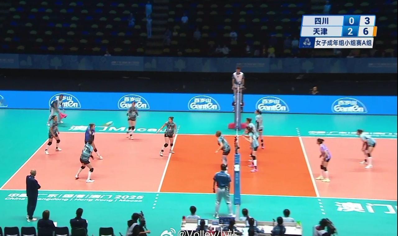 女排小组赛A组,天津女排3比0四川女排(25-17 25-18 25-15),天津女排2胜1负,四川女排0胜4负