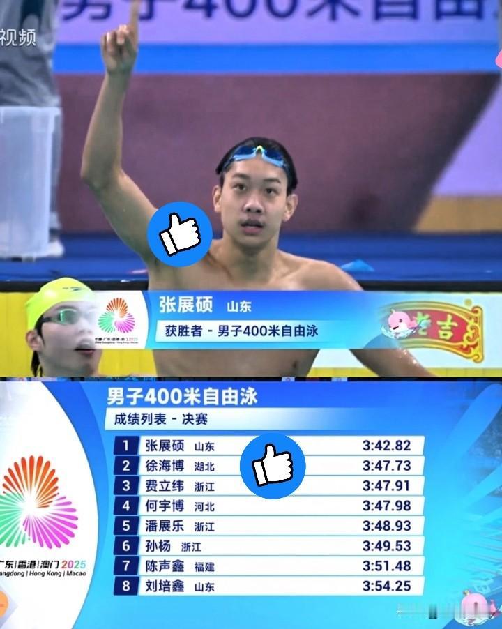 这波真的藏不住了!全运会泳池直接被18岁山东小将张展硕点燃,3分42秒82破世青纪录,力压孙杨、潘展乐拿下400米金牌,这含金量简直炸穿屏幕! 谁能想到赛场霸气怒吼的少年,采访时谦虚得像个“小学生”,连忙摆手说不敢谈“战胜”前辈,满脑子都是要多请教。更绝的是,刚刷新纪录就嫌自己不够快,这份清醒比金牌还圈粉。 其实后浪最可怕的从不是年轻能打,而是天赋够强还不飘,知道把光环踩在脚下踏实向前。张展硕这股“想做自己的英雄”的狠劲,再加上系统训练和超稳心态,三年后的洛杉矶奥运完全有冲金实力!
