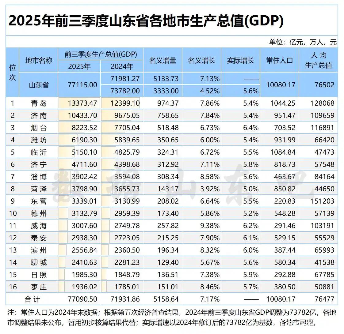 山东三季度的经济数据出炉 山东各地市的数据各有好坏不具体讨论 这里面有些数据值得深度思考 很难想象济南的经济体量已经是泰安+聊城+德州的总和了 青岛更夸张,是潍坊的两倍 是临沂的2.5倍 核心城市人均高,总量更大 马太效应太恐怖了 而省内人口的失衡也很严重 未来济南青岛的人口+经济会持续强化 无可阻挡的大城市路径