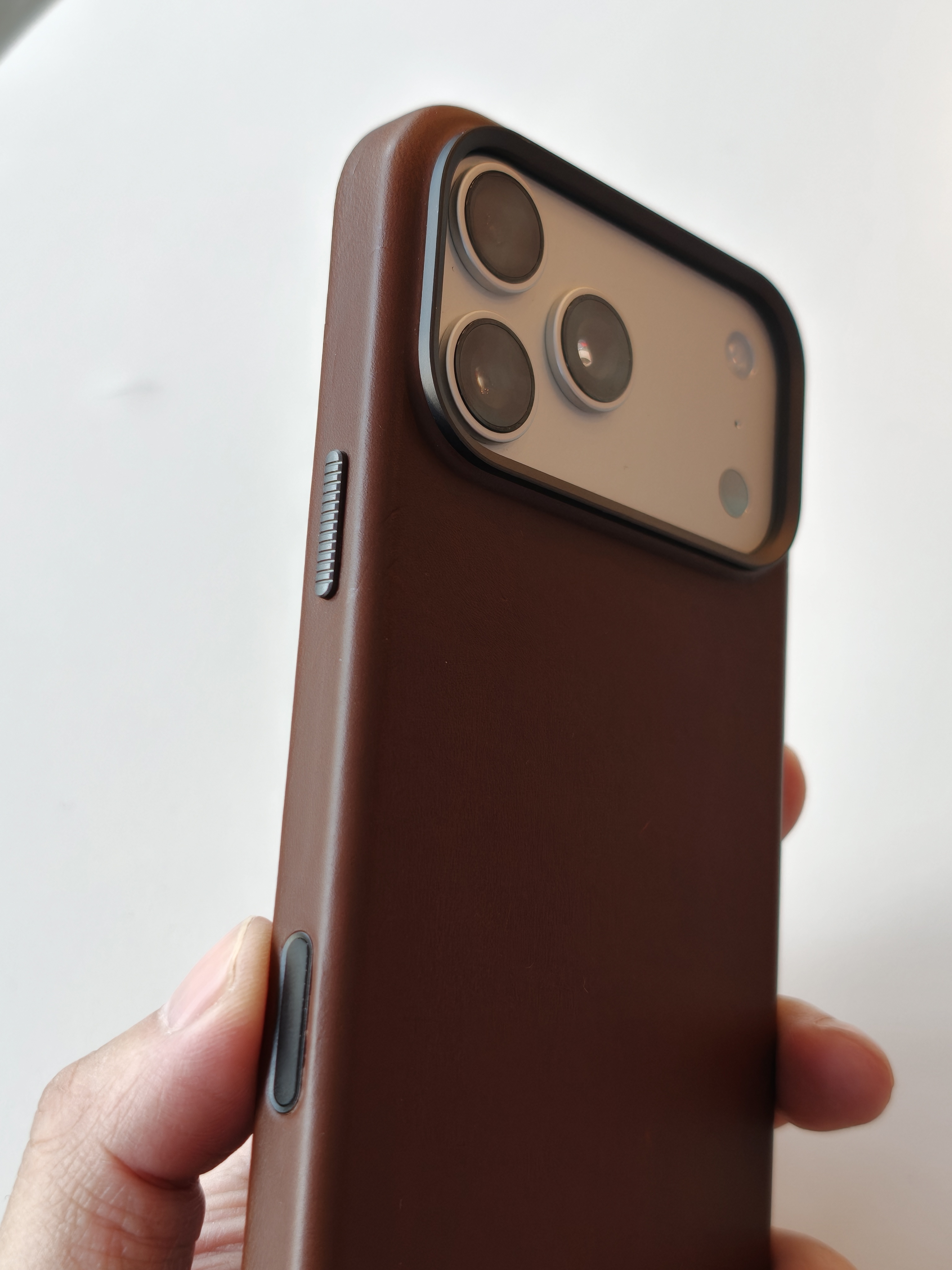 苹果取消了皮壳还是挺可惜的,很多人对皮壳有执念,很喜欢盘皮具的感觉,因为皮壳还会有一个包浆的过程,越盘越喜欢~ 家做了款皮壳,手感可以说跟官方一模一样,如果说区别那可能就是没有苹果logo。