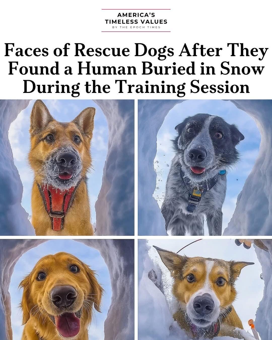 在训练中成功寻获被埋的人后,狗狗的表情: