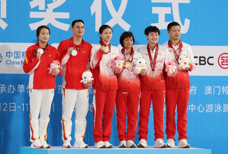 【林珊力压陈艺文登顶女子三米板,成十五运会“三冠王”】11月11日,十五运会跳水项目迎来收官日,在下午举行的女子三米板决赛中,广东名将林珊力压群芳,以379.10分为广东跳水队摘得第6金,奥运冠军陈艺文则收获一枚铜牌。至此,广东跳水队在本届全运会上已经拿到了6金1银2铜的好成绩。本场决赛最后出场的三位选手林珊、陈佳和陈艺文都具备争金实力,比赛也进行得十分激烈。四川选手陈佳三轮过后排名第一,林珊和陈艺文分列第二和第三。关键的最后两跳,林珊发挥更胜一筹,尤其是第五跳5152B,五位裁判给出了9.0的高分,从而强势锁定这一项目的金牌。此前林珊已经帮助广东队拿到过女子团体金牌,也和陈艺文搭档夺得双人三米板冠军,如今再次登上最高领奖台,收获本届全运会的个人第三金,这位24岁的世锦赛冠军赛后直言:“能赢得这块金牌非常开心,因为我觉得这是对我这么多年训练坚持下来的一个回报,虽然这次决赛发挥也有不完美的地方,但最终的结果还是很令我满意的。”被问及会给自己本届全运会打多少分时,林珊表示应该是8.5到9分。