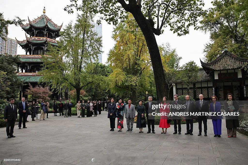 费莱今天在成都,发一组来自G社的图。图1-4在望江楼公园,图5-9在香格里拉酒店。莱后穿了自家裁缝做的粗花呢连衣裙,外面可能还是有点冷,把外套披上了,搭配了Magrit的鞋子,和Dime的糖果吊坠耳环。