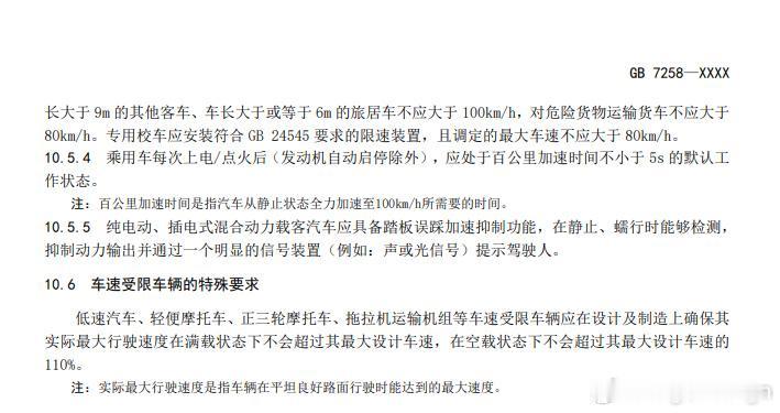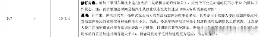 新的国标征求意见稿!新增乘用车启动后应处于零百加速大于5秒的默认工作状态! 这一招可能是防止很多人啊刹车当油门吧,防止误踩的情况,导致突然车速窜的很快。 当然呢,也给了相关人手动解锁的机会,这需要手动设置一下,每次默认这样会更安全。