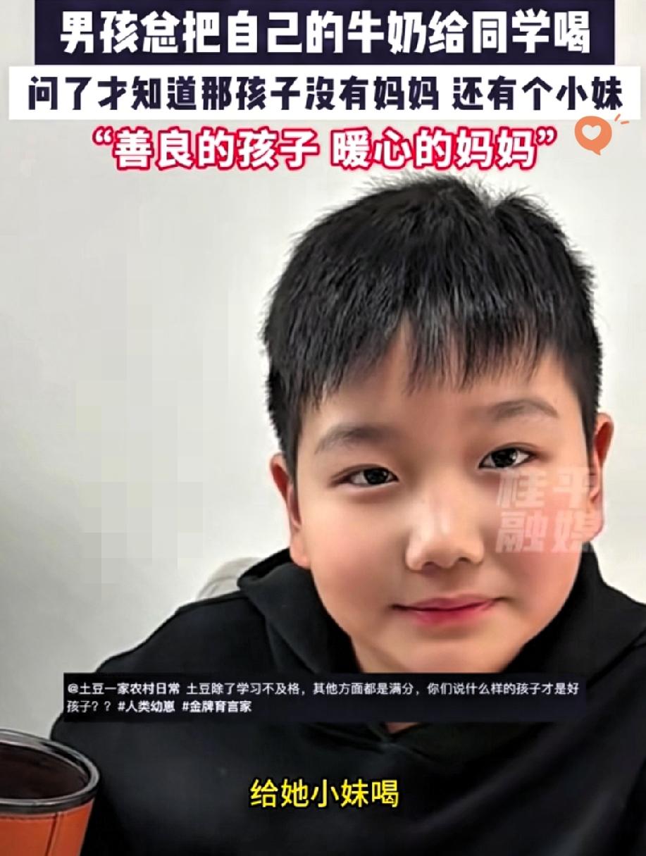 河南这位妈妈本来气呼呼想质问儿子为啥天天把牛奶送人,结果娃一句话让她瞬间破防—— “他没妈妈,还有个小妹”。 没有复杂的权衡,也不懂什么人情世故,小孩的善良就是这么纯粹:看到同学舍不得喝牛奶全让给妹妹,就悄悄把自己的那份攒着送出去,还惦记着要多带一瓶,让小妹也能喝上。 更难得的是妈妈的反应,没有指责孩子“浪费”,反而立马答应带三瓶,这份对孩子善意的守护,比任何道理都管用。 其实最好的教育从不是说教,而是让孩子在被包容中学会共情,在被支持中懂得担当。 现在太多人被生活磨得少了同理心,可这孩子用小小的举动告诉我们,善良从来都不是多余的。 你家娃做过哪些让你意外又暖心的事?评论区聊聊~
