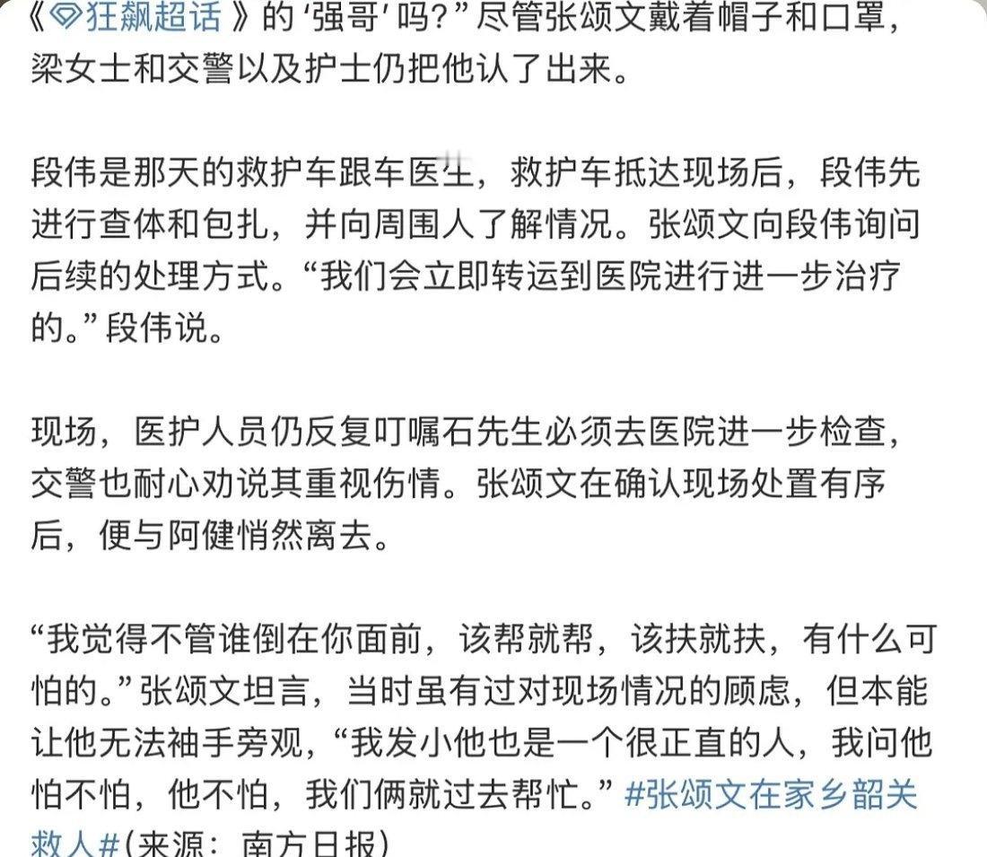 危急时刻,韶关籍知名演员@张颂文 与多位热心市民,及时赶到的交警和医护人员,共同