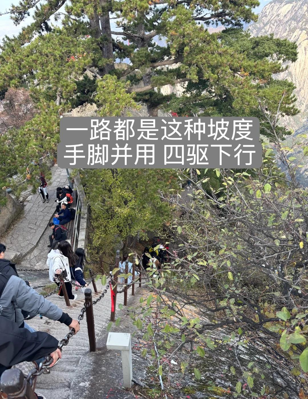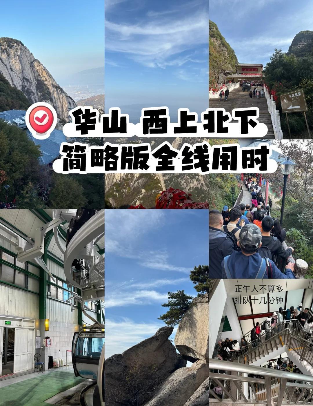 11月周末华山西上北下简略版用时攻略 ✅个人体力不强,选择最少损耗的西上北下路线 ⚠️手套🧤必备,抓铁索🔗手脚并用,四驱, 登山杖、护膝,看个人需求,本人登梯需要 ❌入口摆渡车检票口管理混乱,栅栏设置不合理,体验感很差 ❌东峰没上顶,路口拍照📷就走了 ❌没去长空栈道,要另行预约,预约了也要排队 ❌舍弃中峰 ☠️下行至 北峰索道 那段地狱级栈道 无法避开 走完那段 才能坐到北峰索道下山 打心底佩服迎面而来选择北峰上行的挑战者[汗] 一路上都传来“再也不来了”的感慨声 尽管如此[伤心]腿依然废得彻底 当天拉伸➕按摩,还是痛了三天[可怜] 千万别信什么“小小华山拿捏”[石化]大自然教我做人 给姐妹们计时作个参考 自古华山一条路 登顶 小小华山轻松拿下 自然景区登山观光 小小华山拿下拿下 一览众山小