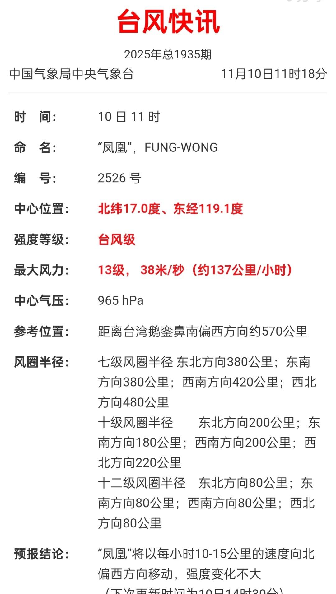 台风凤凰已进入南海 台风凤凰以15级登陆菲律宾,对菲律宾造成重大破坏,但受菲律宾吕宋岛地形影响,台风凤凰也减弱为13级,目前已经进入南海,未来先向西北方向移动,从中央气象台预报看,台风凤凰将在南海二次加强,重回14级,但后面受冷空气和副高影响,台风凤凰逐渐减弱,并且往东北方向移动,将于12日下午到晚上在台湾岛西南部沿海再次登陆,登陆强度10-12级,以后迅速减弱,传统数值和ai模型路径统一,大概率登陆台湾,而广东,福建和浙江,甚至是上海,都有降水,福建和粤东有大风,而台湾最严重,这有可能是今年最后一个登陆我国的台风,台风凤凰过后,西太又要进入短暂的台风空窗期,至于下一个台风什么时候生成,等临近再看,但台风凤凰不一定是今年最后一个台风