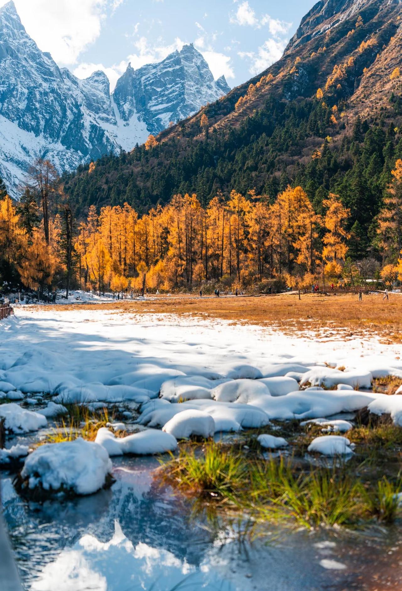 毕棚沟|一半彩林一半雪 门票70+观光车70+电瓶车两段往返共60 上行 1️⃣游客中心-龙王海 大巴 20min 坐左边,到了龙王海下车往左手,逆时针环海一周到乘车点继续坐大巴上行 2️⃣龙王海-上海子 大巴 20min 坐右边,到达后往前走现场购买上海子到磐羊湖的电瓶车票,刷身份证或二维码,单程20往返30 3️⃣上海子-卓玛滩 电瓶车 经停卓玛滩,逛完之后根据指示继续坐车 4️⃣卓玛滩-磐羊湖 磐羊湖从左边栈道步行到月亮湾坐电瓶车,去燕子岩窝,坐左边 5️⃣磐羊湖-红石坡 这一段可以停可以不停,我们因为前面逗留比较久,所以直接坐车到燕子岩窝 6️⃣燕子岩窝(最高点) 进燕子岩窝景点右手上,左手徒步路线下 下行 7️⃣从燕子岩窝返程时,可以一直坐电瓶车到上海子再下车,不必在磐羊湖下 8️⃣上海子坐大巴返程,18.00 前有车 简略总结: 1 游客中心-龙王海 大巴 2 龙王海-上海子 大巴 3 上海子-磐羊湖 经停卓玛滩 4 磐羊湖步行到月亮湾 5 磐羊湖月亮湾-燕子岩窝 经停红石坡 6 燕子岩窝-上海子 9 上海子大巴返程 秋天去看彩林 毕棚沟 毕棚沟攻略 毕棚沟旅游 雪山下的秋天