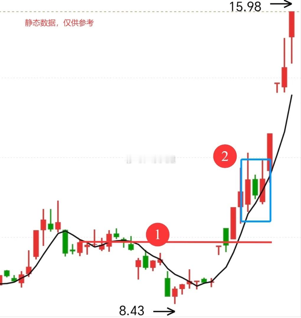双响炮+杯柄形态下图是一个非常经典的“双响炮+杯柄形态”,这种技术形态我在之前是分享过很多次的,如果发现了“双响炮+杯柄形态”这种技术形态的,一定要重视起来!虽然这一类型的技术形态的成功率很高,值博率也很高,但并不是每一个“双响炮+杯柄形态”都能像这个一样大涨。那什么样类型的“双响炮+杯柄形态”才能大涨呢?上面这个是小鹏机器人概念的,这个是很关键的,这个就是题材+技术形态的双结合了,所以如果是出现了题材热点,然后又是“双响炮+杯柄形态”这种技术形态的,那么这种类型的就很容易大涨。我们从技术面来看,看①这个位置,这是一个杯柄形态,杯柄形态意味着主力吸筹之后很快要走主升浪的行情了。看②这个位置,这是一个典型的双响炮形态,我在之前分享过详细的策略,还分享了双响炮的选股程序,有需要的可以自取。个股一般出现了双响炮,意味着主力已经洗盘结束。后面也可以看到直接走出了连续涨停的主升浪。技术选股都是多个层面一起结合的,像上面这个,如果出现了两个技术面形态,然后又出现题材热点加持,那么碰到这种类型,就不要错过了。以上数据为历史静态数据,不代表未来走势,仅供学习,不作为任何投资依据!