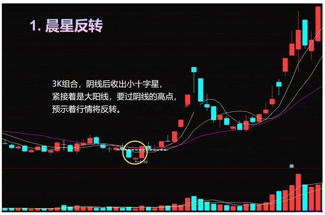 看似稀松平常的4种十字星搭配组合,不经意间华丽转身转强,值得收藏!1、黎明之光,晨星反转→由空翻多,重要的见底信号之一2、十字加阳,反转上扬→大阳打破平衡进入强多格局3、中继夹星,趋势上涨→涨势修正继续接力4、母子星线,主力迂回→拉升前的挖坑
