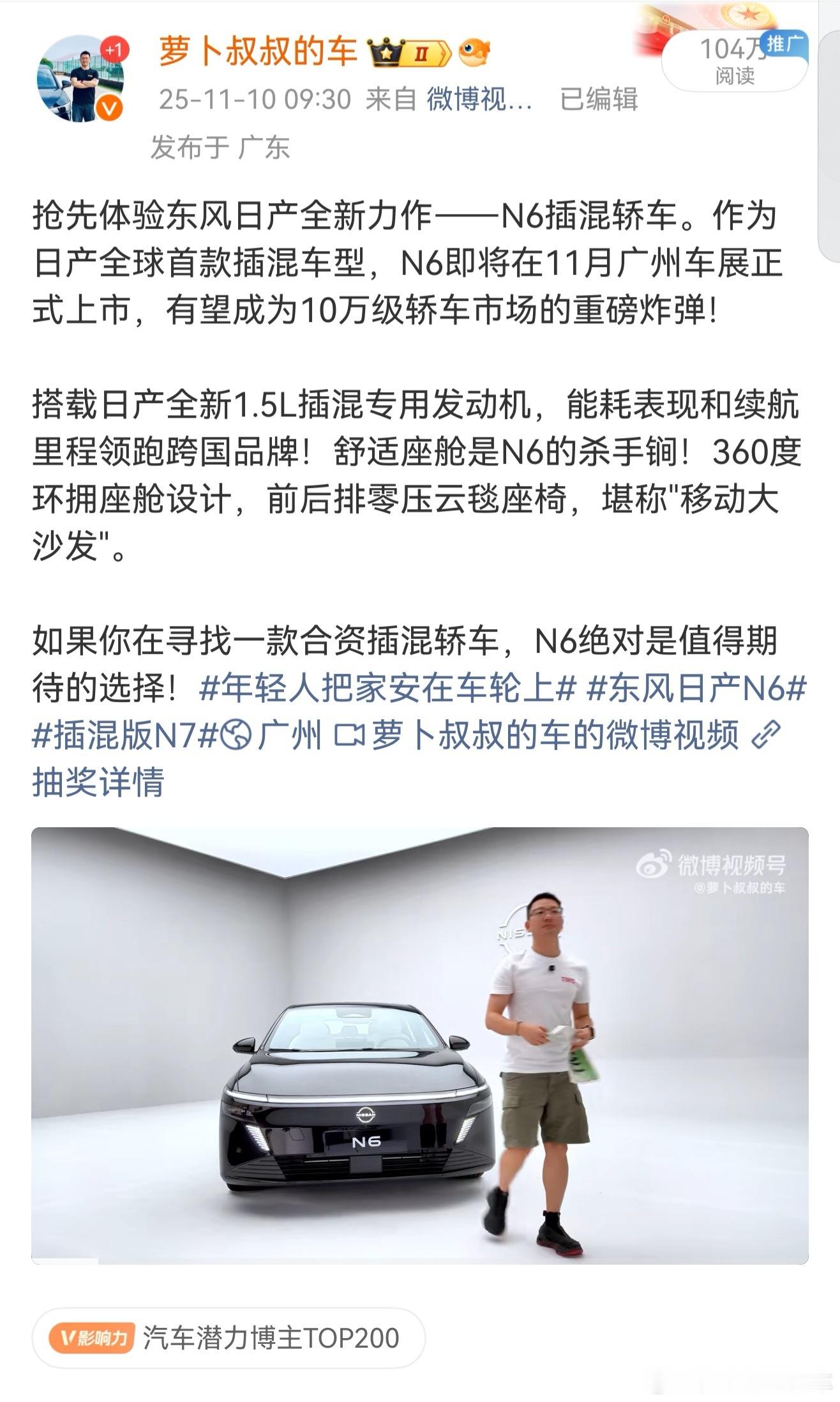 微博的谜之操作,100万阅读量之后,把我东风日产N6的视频给夹了。