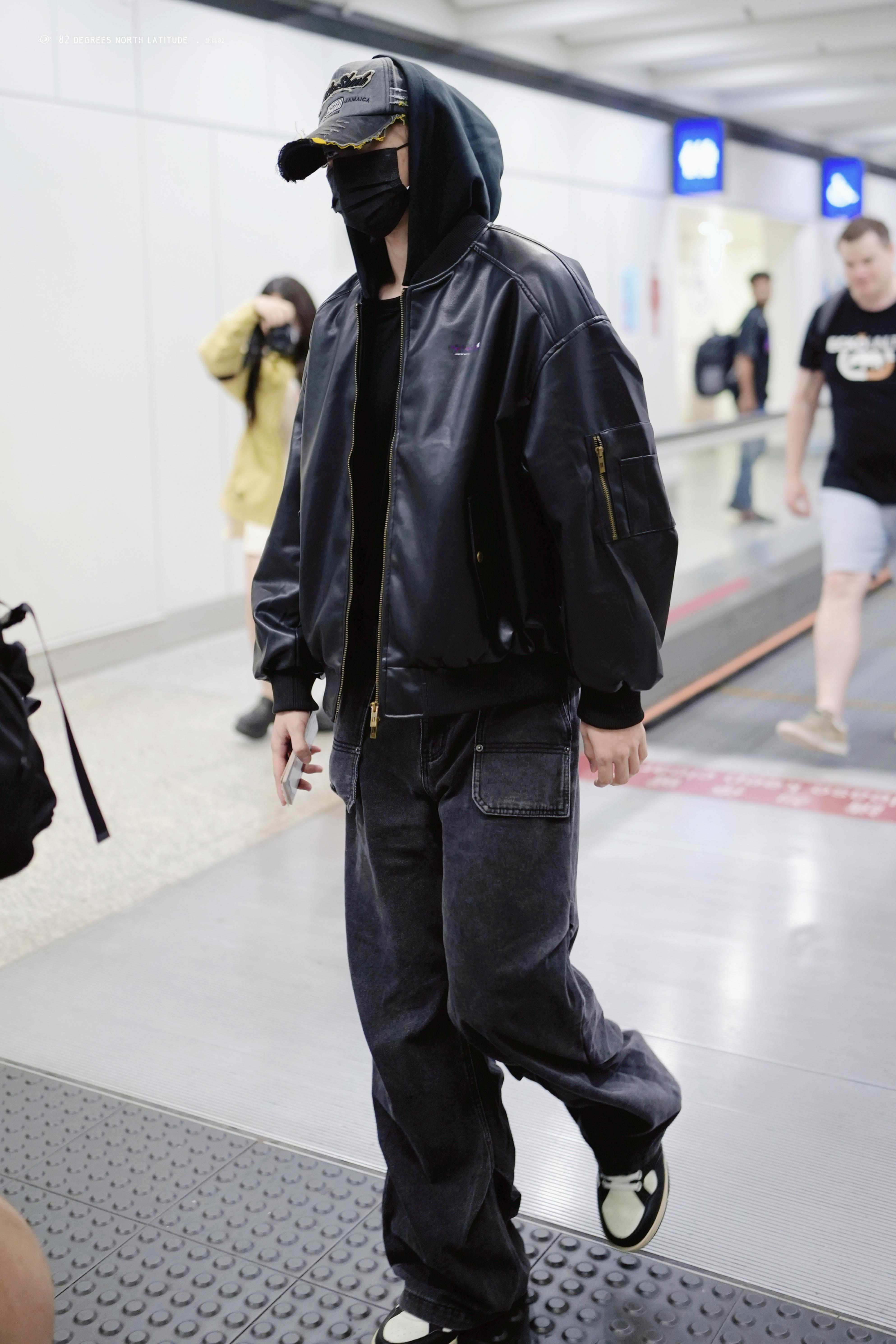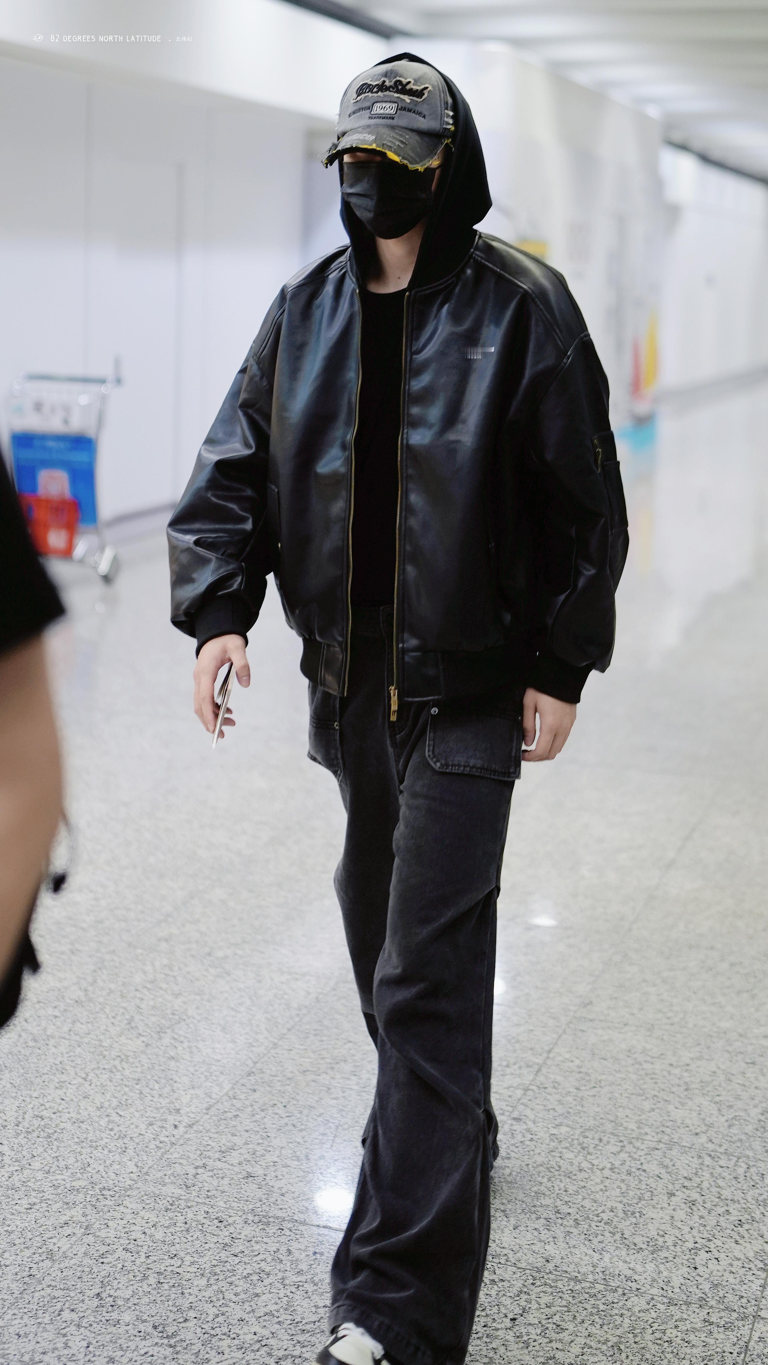 蔡徐坤出发洛杉矶机场路透🛫 身着BONELESS连帽皮质夹克搭配皱褶牛仔裤和棒球帽,脚踩AVIA板鞋,相当有范,音乐节结束后又火速开启海外行程啦,期待KUN再次闪耀全球时尚舞台🐮