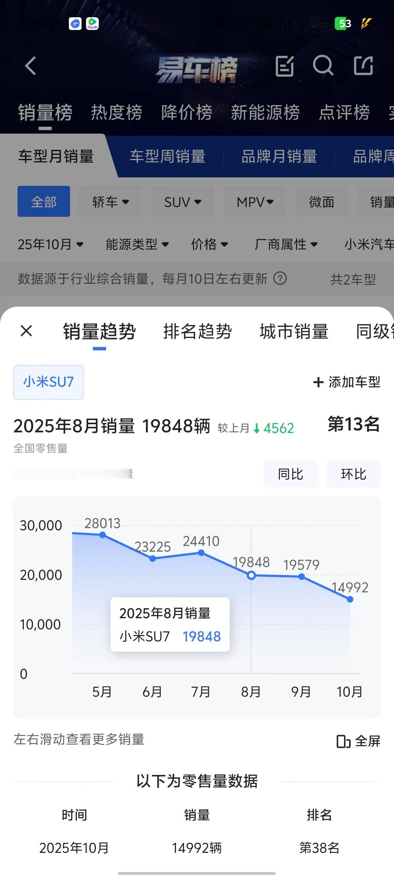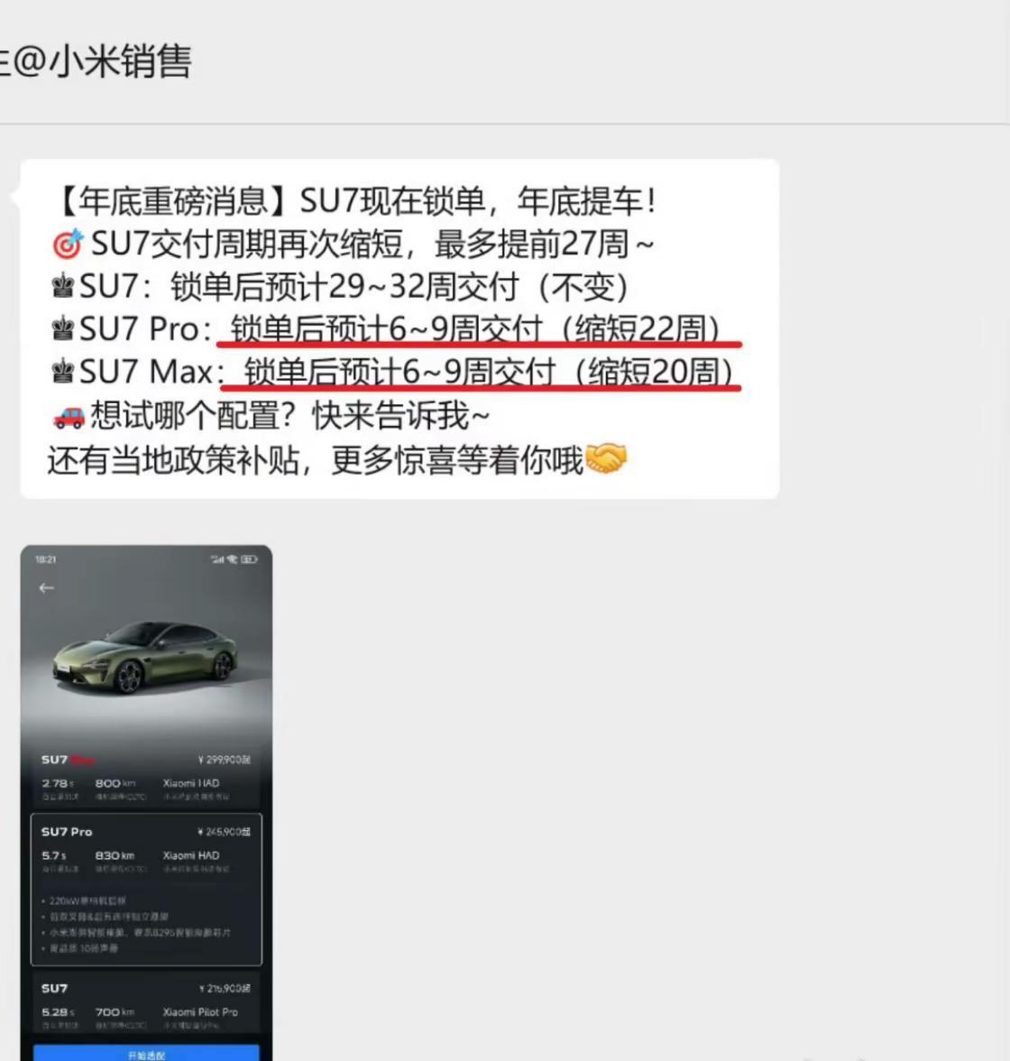 小米su7交付时间突然缩短至6-9周,10月份只交了1.49万台,创新低,但是su7Pro和max交付时间突然缩短至6-9周,从原来的30周突然变成6-9周,25年都有可能提车了这落差令人震惊。