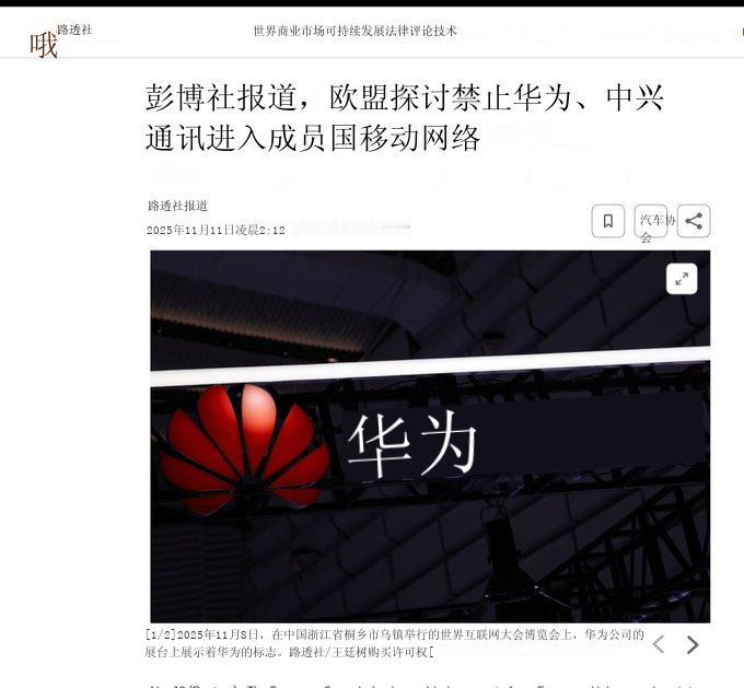 欧盟准备禁止华为中兴的电信设进入成员国的移动网络。 2025年11月10日,彭博社援引知情人士报道,欧盟委员会正探索多种方式,强制欧盟27个成员国从电信网络中逐步剔除华为技术和中兴通讯(ZTE)设备。 这项提议旨在将2020年欧盟发布的“5G网络安全工具箱”建议升级为具有法律约束力的规定,覆盖5G及未来代移动网络、固定线路基础设施如光纤和宽带扩展。 截至2024年底,仅11个欧盟成员国完全实施了5G安全指南,禁止或限制华为和中兴设备。2025年3月欧洲议会文件显示,至少14个国家不愿完全放弃中国5G设备。 中国外交部于11月11日迅速回应,发言人林剑表示,此举“严重违反市场原则和公平竞争规则,将经贸问题泛安全化、政治化,将阻碍技术进步和经济发展,损人不利己”。他强调,华为和中兴设备“优质安全”,移除将造成“巨额经济损失”和技术滞后,并敦促欧盟避免损害企业投资信心。 欧盟2020年工具箱仅为建议,导致执行不均。美国推动盟友跟进(如英国、瑞典),但欧盟内部主权分歧大。