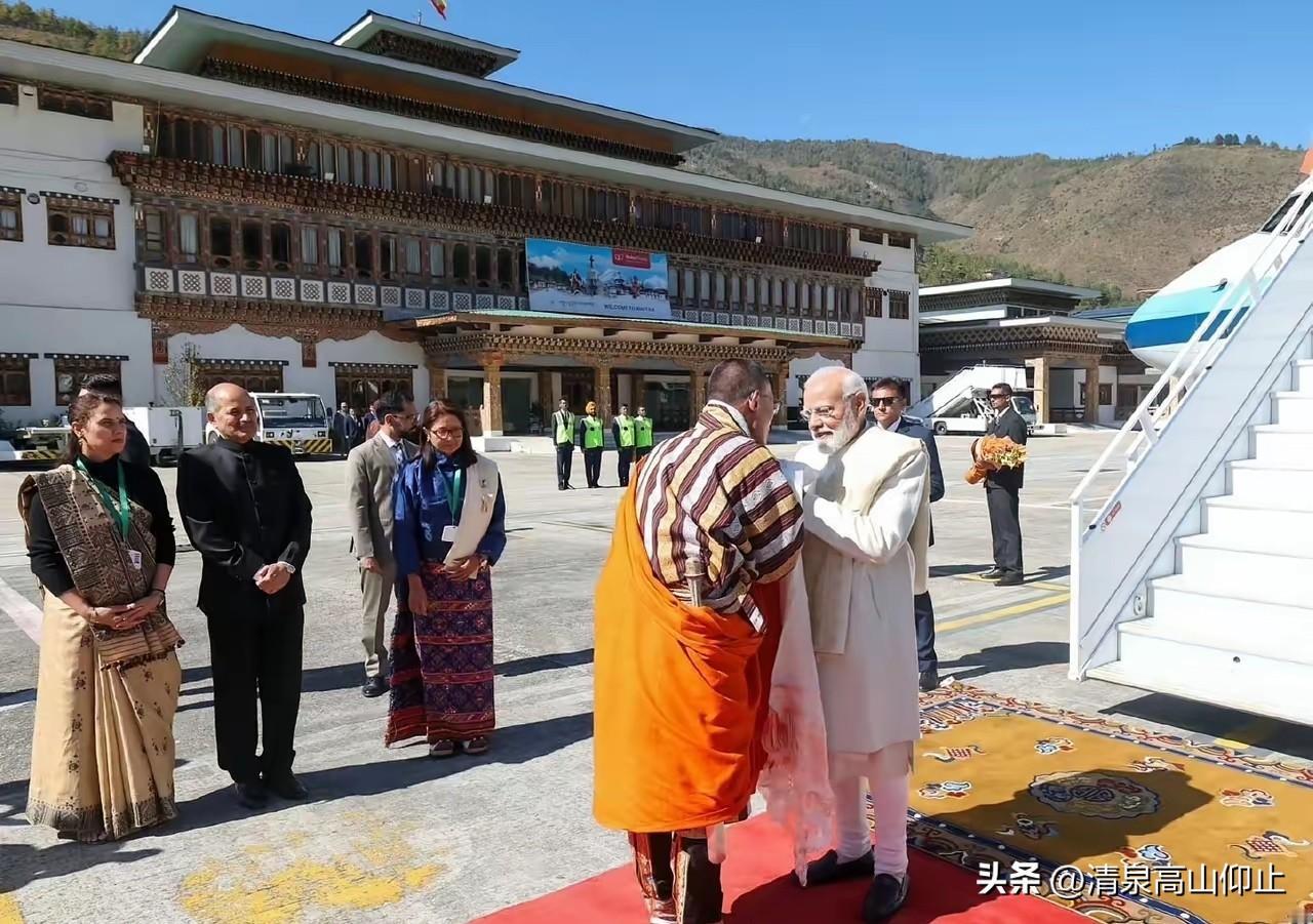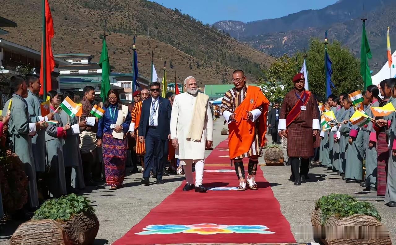 11月11日 莫迪去了这里! 存在感满满!不丹五世国王亲自赴机场迎接,与低调谦逊的不丹国王相比,莫迪老仙走红毯的模样是如此的霸气! 光棍节当天,莫迪去了不丹,名义上是参加不丹四世国王现太上皇的七十岁大寿,还要与不丹总理策林举行会谈,推进印度与不丹能源合作项目,并将启动普纳昌河水电站二期工程建设! 每次遇到不顺之事时,莫迪就会到访不丹一趟,散散心!作为主权国家,不丹的外交军事基本都依靠印度,有点百依百顺,弄的不丹成为全世界唯一与五常国家都未建交的主权国家! 作为外人,莫迪的骄傲与不丹国王的文质彬彬相比,看起来怎么有点别扭?但是据西方媒体统计,不丹国民居然幸福感排在全球前列!可能一切习惯了就好! 这就是小国与弱国的生存方式!