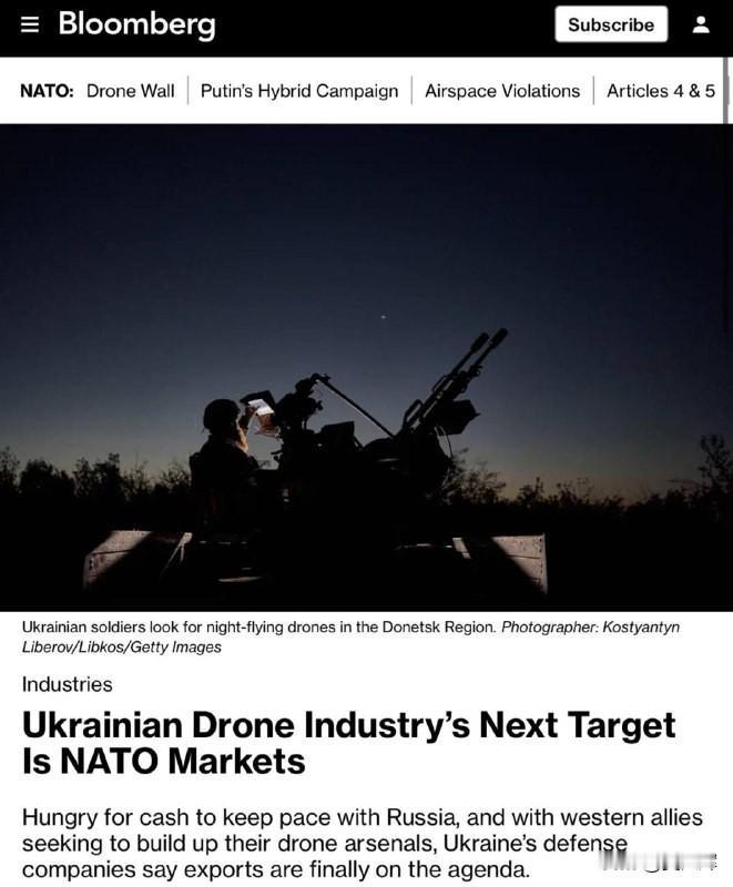 彭博社报道:乌克兰目前每年约生产400万架无人机,这一数量可能超过所有北约国家的总和。以美国为例,每年仅生产约10万架军用无人机。 2022年,乌克兰仅有10家无人机制造商,如今已增至500家,生产各类无人机——从数百美元的第一人称视角(FPV)无人机,到远程无人机应有尽有。彭博社称,乌克兰无人机产业的下一个目标是进军北约市场。