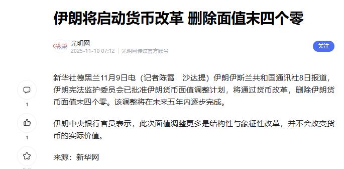伊朗已经批准把自己国家的货币“去掉4个零”,也就是一万元变1元。有些国家会周期性的出现这种很“奇葩”的事情,其实一般只有一个原因。 这个原因就是长期的高通胀! 就说伊朗的货币里亚尔,早年间也不是现在这副模样。上世纪七八十年代,里亚尔的购买力还挺扎实,那会儿买斤面粉、打瓶油,几张小票子就够了。 可自从2018年美国退出伊核协议搞制裁,伊朗的经济就像被按进了泥潭里——石油出口这大财源被掐住,政府财政收不上来钱,又得维持民生和各项开支,怎么办?最省事的法子就是印钱。 一开始印小面额的还够用,可通胀就像滚雪球,今天一块钱能买的面包,明天就得花十块,后天可能要一百块。钱越来越不值钱,市场上流通的钞票就越来越多,面额也跟着水涨船高。 到后来,买袋大米都得扛着一沓沓的钱,商家记账得用计算器不停按零,连印钞厂都犯愁——印小面额的成本比钱本身的价值还高,可不就得往大面额上靠嘛。 其实不光伊朗这样,津巴布韦当年的“货币奇观”更让人咋舌。那阵子他们的钱上全是天文数字,最大面额的钞票直接印到了100万亿,光后面的零就得数半天。这哪是钱啊,简直就是印刷品。究其根本,还不是经济崩了之后瞎印钱闹的。 本来农业还能撑住场面,结果土地改革一折腾,粮食产量暴跌,外汇储备见了底。政府没钱就敞开印钞机,今天印一批补窟窿,明天通胀翻番又得印更多,恶性循环下来,货币贬值得比纸还便宜。有当地人说,当年买个鸡蛋都得拎着一麻袋钱,后来干脆没人愿意用本国货币,都换成美元交易,这钱算是彻底废了。 委内瑞拉也没逃过这魔咒,这些年光是货币“去零”就搞了好几次,从去掉3个零到后来再去5个零,越去零说明通胀越凶。他们本来靠卖石油日子过得挺滋润,可油价一暴跌,财政立马断了档。 政府不想着节流,反而一个劲儿印钱发福利,结果钱印得越多,物价涨得越快。最夸张的时候,通胀率一年能飙到几百万百分比,老百姓早上领的工资,到晚上可能就只够买瓶矿泉水。 商店里的商品标价全是一串让人眼晕的数字,收银台的计算器都快算不过来了,最后没办法,只能一次次给货币“瘦身”,可根源的通胀没解决,换汤不换药,该难还是难。 说穿了,货币上的零多不多,就是衡量一个国家通胀控制得好不好的直观标尺。正常情况下,政府会盯着经济情况调节货币供应,就像给鱼缸换水,慢慢换才不会惊到鱼。 可要是财政出了大窟窿,又没别的办法筹钱,只能硬开印钞机“大水漫灌”,市场上的钱远超实际需要的商品和服务,物价不飞涨才怪。这时候货币的基本职能都快失效了——没法好好计价,没法方便交易,更没法保值,可不就得靠“去零”来救急嘛。 伊朗这次搞货币去零,其实上世纪九十年代就想过,只是当时没办成。现在终于通过了,还设了好几年的过渡期,说白了就是给市场和民众一个适应的缓冲。 但懂行的都知道,去零本身治不了通胀,就像给肿起来的腿穿个松点的裤子,看着舒服了,可腿肿的病根还在。要是西方制裁不解除,财政漏洞补不上,印钱的冲动刹不住,说不定过些年,里亚尔还得再经历一次“去零”。 那些跟着起哄说“这国家货币真奇怪”的人,其实没看透本质。这些所谓的“奇葩”操作,背后全是普通老百姓的心酸——手里的钱一天天缩水,日子过得提心吊胆。货币是国家经济的“脸面”,脸上的“零”太多,说明经济身体早出了问题。 伊朗这次去零,与其说是货币改革,不如说是给全世界提了个醒:通胀这东西,要是控制不住,再多的“去零”也填不上经济的坑。毕竟,能让钱值钱的从来不是去掉几个零,而是扎实的经济底子和靠谱的治理本事。