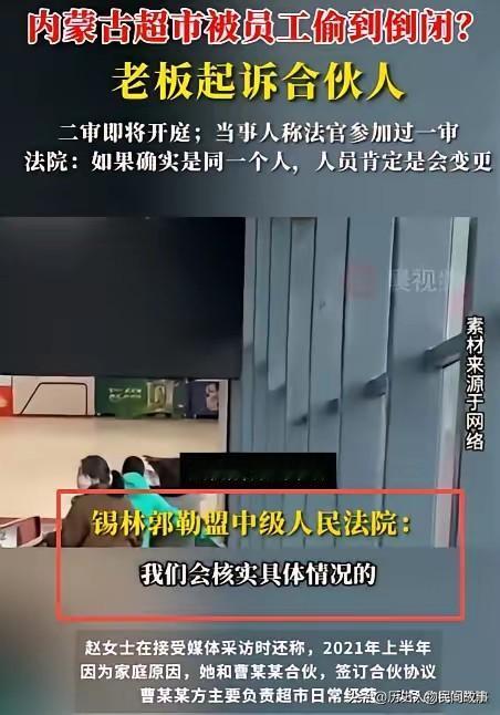 监守自盗致超市倒闭,二审法官“同名”引争议:程序公正不可破 近日,内蒙古锡林郭勒盟赵女士的超市经营纠纷事件,因“全员盗窃”与“二审法官资格争议”双重话题引发广泛关注。原本盈利的3000平方米超市,合伙经营7个月便因200余万元亏损倒闭,查监控后赵女士震惊发现,16名员工竟无一人幸免参与偷拿,员工亲属、供货商等13人也牵涉其中,而后续与合伙人的合同纠纷审理中,又出现二审法官与一审审判员为同一人的程序争议,让事件更显曲折。 据调查,超市员工的偷窃手段五花八门,既有拆开高端礼盒品尝后带回家的“偷吃”行为,也有通过少扫码、不扫码或低价结算等方式窃取商品的操作——一袋100元的牛肉干仅以0.5元结账,价值1700元的商品结算时仅付1元 。仅合伙半年间,超市采购的22万余元鸡蛋就丢失6吨多,价值超10.8万元。案件经司法审理后,8名员工因盗窃罪获刑(多数为缓刑),2人被检察院决定不起诉,另有14人被公安机关终止侦查 。其中盗窃次数最多、金额最高的收银员刘某凤,因漏罪被合并执行有期徒刑2年3个月,却因“尿检阳性怀孕”获监外执行 。 超市倒闭后,赵女士因经济纠纷将合伙人曹某某诉至法院,一审败诉后提起上诉。然而她在二审《合议庭组成人员通知书》中发现,一名张姓审判员竟与参与一审质证环节、且在民事裁定书中署名的审判员同名 。经核实,二者确为同一人——该法官已从一审法院调至二审法院锡林郭勒盟中级人民法院。这一情况引发赵女士强烈质疑,而根据《最高人民法院关于适用〈中华人民共和国民事诉讼法〉的解释》第四十五条,在一个审判程序中参与过本案审判工作的审判人员,不得再参与该案其他程序的审判 。对此,二审法院回应称,核实后已确认身份重合,将调整审理法官,确保程序公正 。 从全员监守自盗的“职场塌方”,到二审程序中的“法官资格争议”,这起事件暴露出多重问题:员工漠视法律与职业操守,将职务便利化为盗窃工具,最终自食刑责苦果;而司法审理中的程序合规,更是公正裁判的前提,法官任职调整不能突破“禁止重复参与审理”的底线。无论是职场还是司法领域,规则与公正都是不可触碰的基石。目前二审法官调整已提上日程,期待案件能在合规程序下得到公正审理,也希望这起事件能敲响警钟——坚守职业底线、恪守程序正义,才是维护各方权益的根本。 需要我帮你整理这起事件中“盗窃案”与“合同纠纷”的核心事实对比表,清晰区分两起关联事件的关键信息吗?推定判决 超市争端 素材来源于网络,侵权删除。