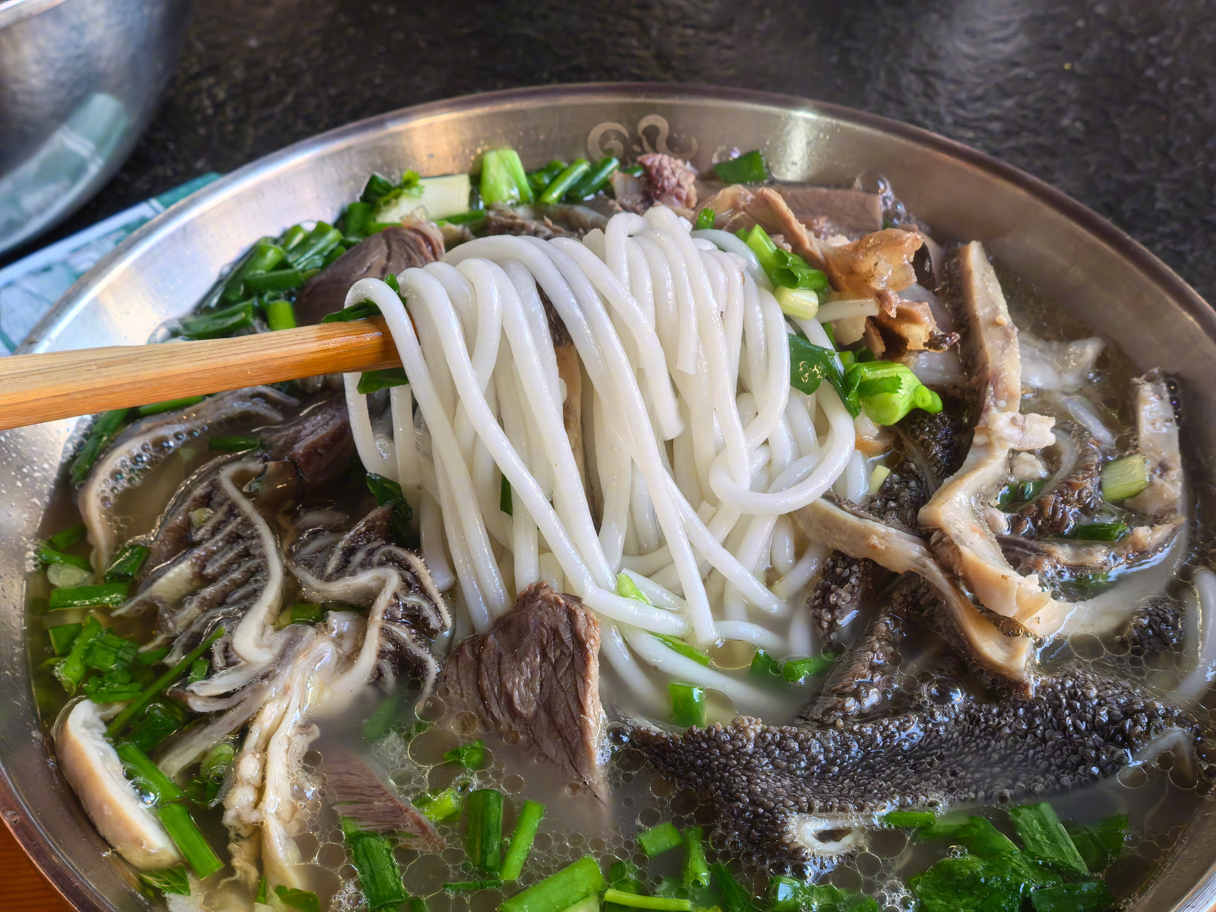 攀枝花羊肉米线是特色,很好吃,很鲜,羊肉也嫩,里面有青麻椒,加点薄荷很爽口。本地巨大凯特芒也很爽,2.5元一斤,吃芒果能吃饱,嗝。本地还产百香果,摊主极力推荐,我就没买,我心想我北京吃百香果一般不花钱,有特供款,不过好久没吃到了,怎么没人进贡啊