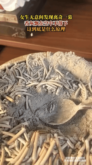 “彻底解释不清了!”江苏一女子无意间发现离奇的一幕!在香炉内烧完的香灰竟然飘在空中不落下,用勺子端了一下,重新松开,香灰又飘起来了!女子上网求助:“这是什么原理?” 一女子在家烧香拜佛,香烧完后,女子准备去清理香炉,走近一看,吓一跳! 香炉上方有一粒香灰竟然悬浮在空中,女子出 好奇心作祟,女子找来一把小勺子,用勺子端了一下香灰,当勺子离开香灰的瞬间,神奇的事情发生了——那香灰竟然又缓缓地飘了起来。 网友们纷纷留言,各种猜测和解释层出不穷。 有人说,应该是只蜘蛛丝!我遇到过树叶飘着不落!蜘蛛丝特别细,有时候光线的问题根本看不见 还有人说,不排除拍摄角度、光线等因素造成香灰飘空的视觉假象 更有人调侃说,是不是香灰成精了,想飞上天看看? 看视频样子看不出来,要是没有蜘蛛丝吊着的话,应该是香灰颗粒质量极轻,若香炉内空气流动缓慢(如密闭环境),或香灰燃烧后产生少量热气形成上升气流,可能暂时支撑香灰悬浮。 对此,大家觉得呢?