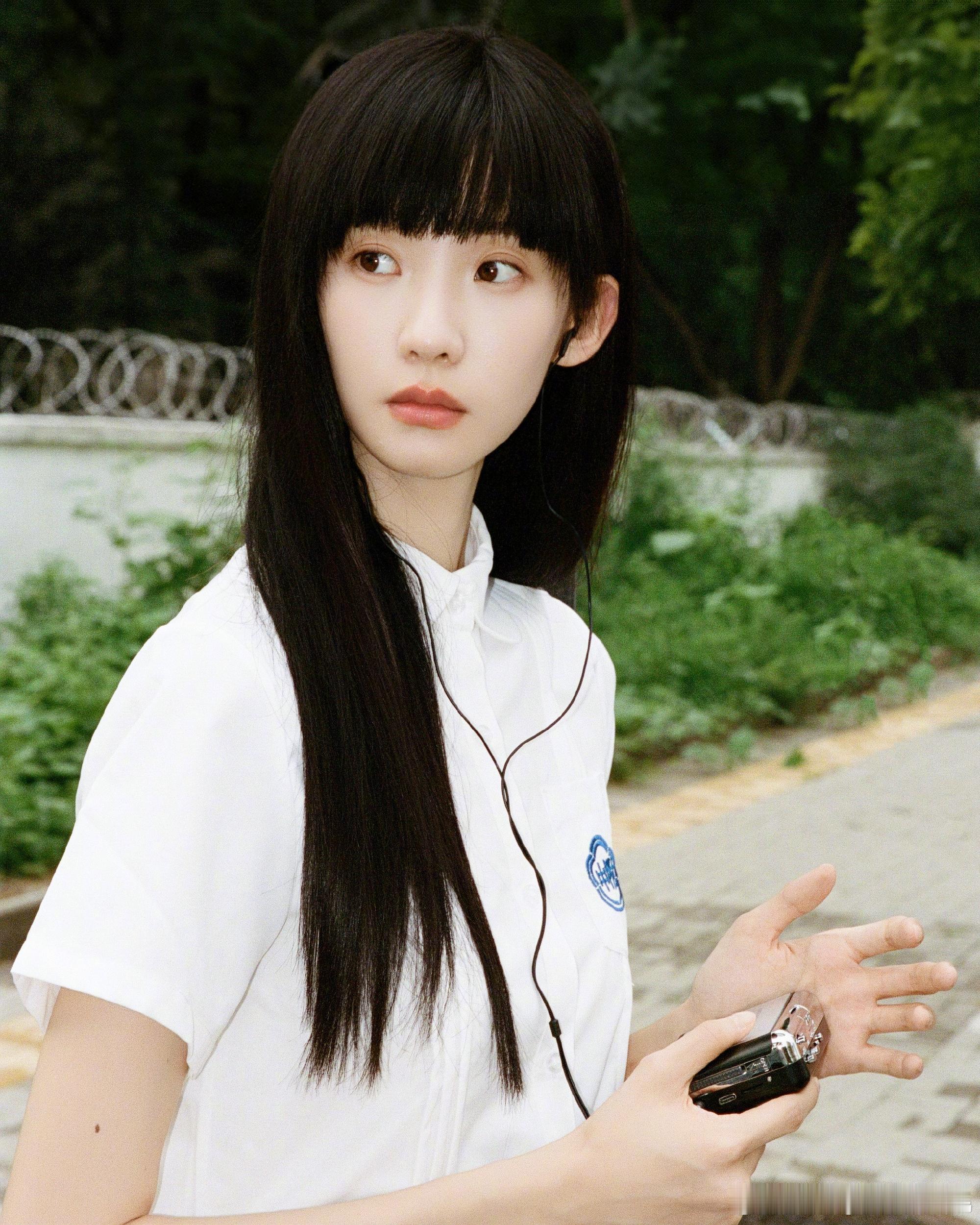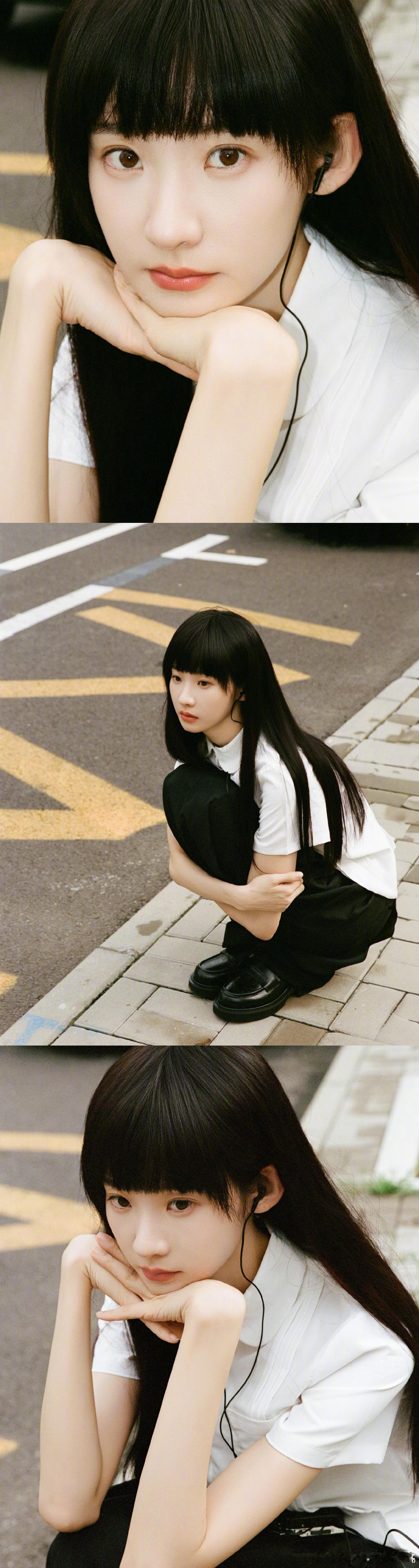 校服写真太绝!白衬衫配黑长直,眼底藏着细碎情绪,笑时明媚、不笑清冷,妥妥青春伤痛