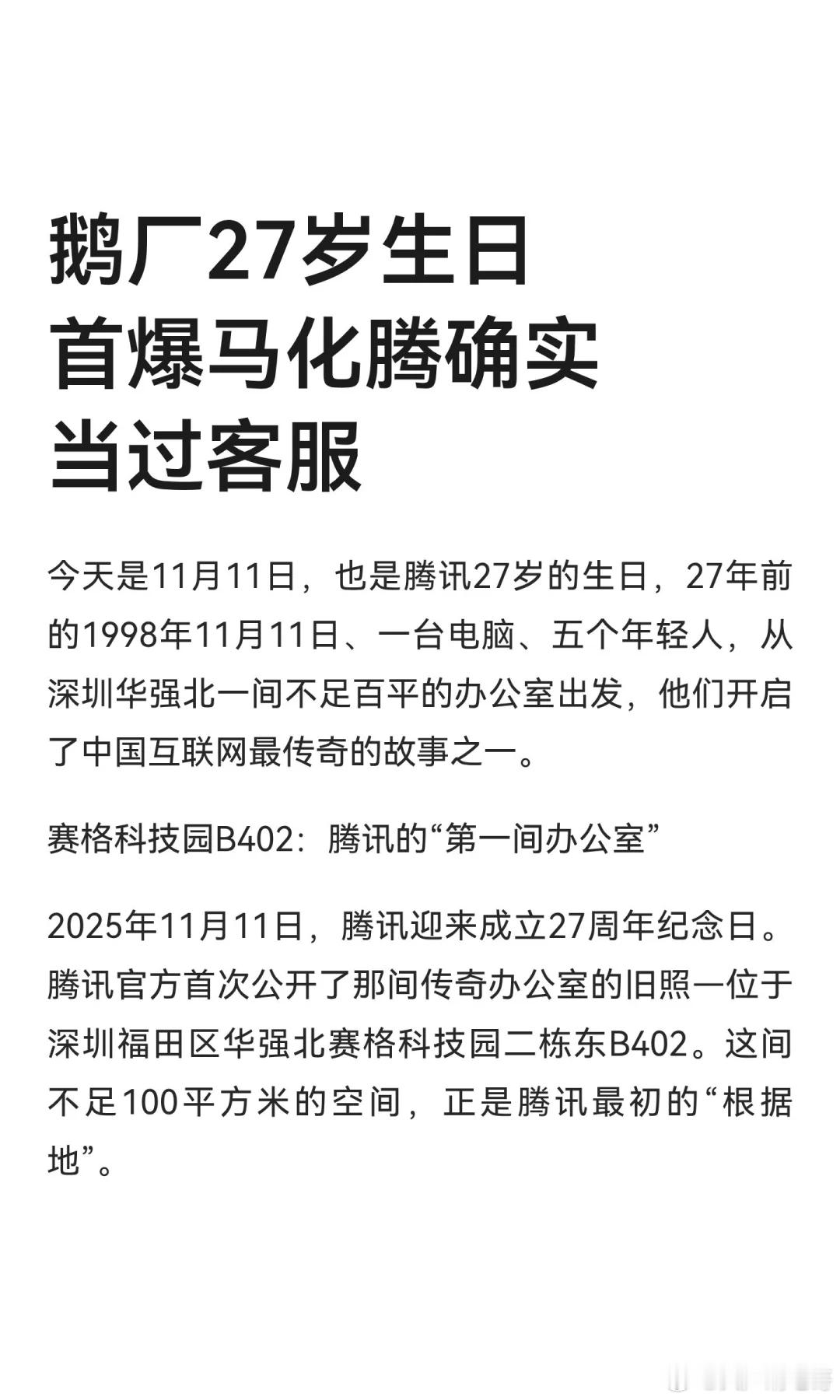 腾讯27岁生日大瓜!马化腾居然当过客服?