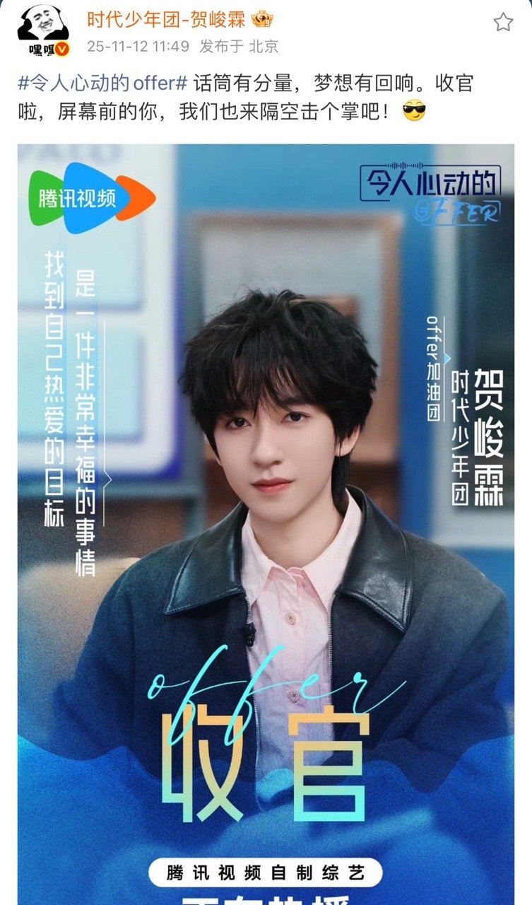 贺峻霖令人心动的offer收官发文,话筒有分量。收官啦!