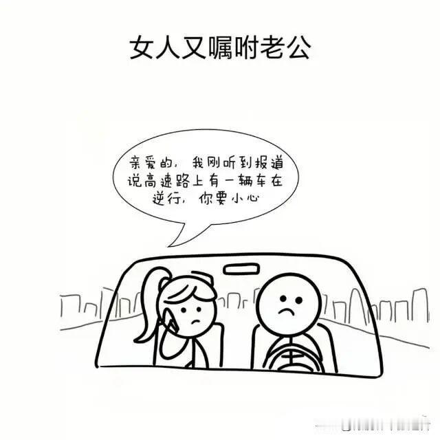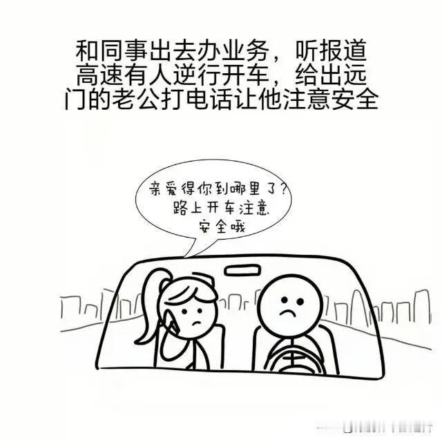 趣味漫画:女友:“亲爱的,我刚听到报道说高速路上有一辆车在逆行,你要小心!”男友