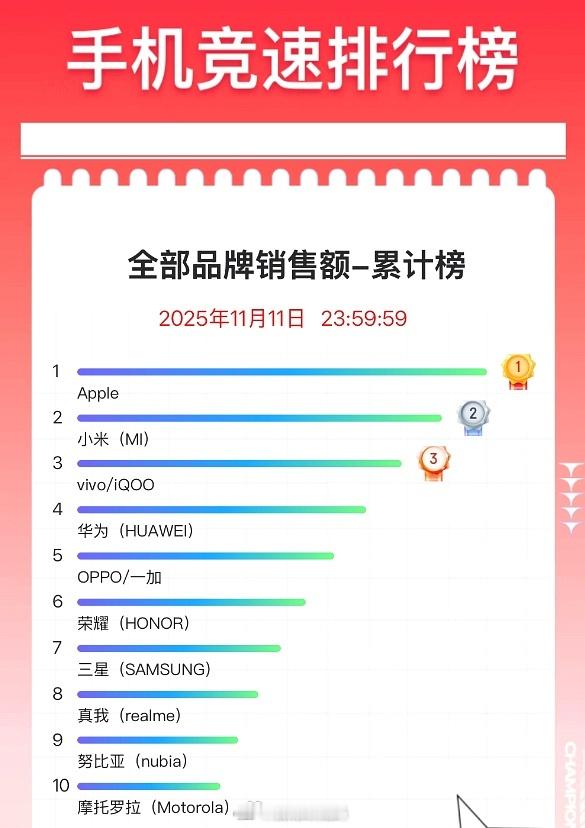 今年双十一落下帷幕,手机销量/销售额排名出炉,这个双十一大家都买什么手机了?