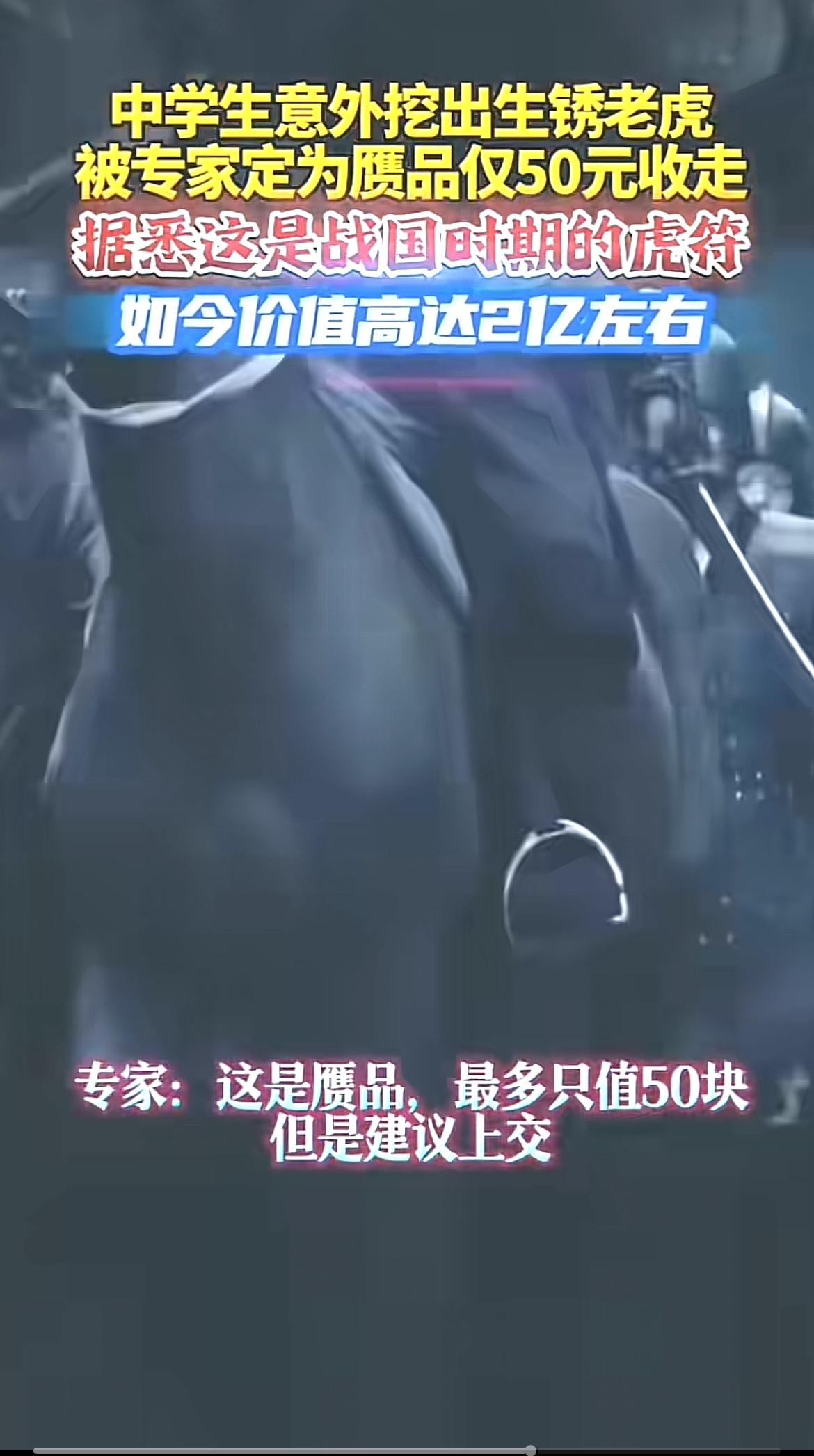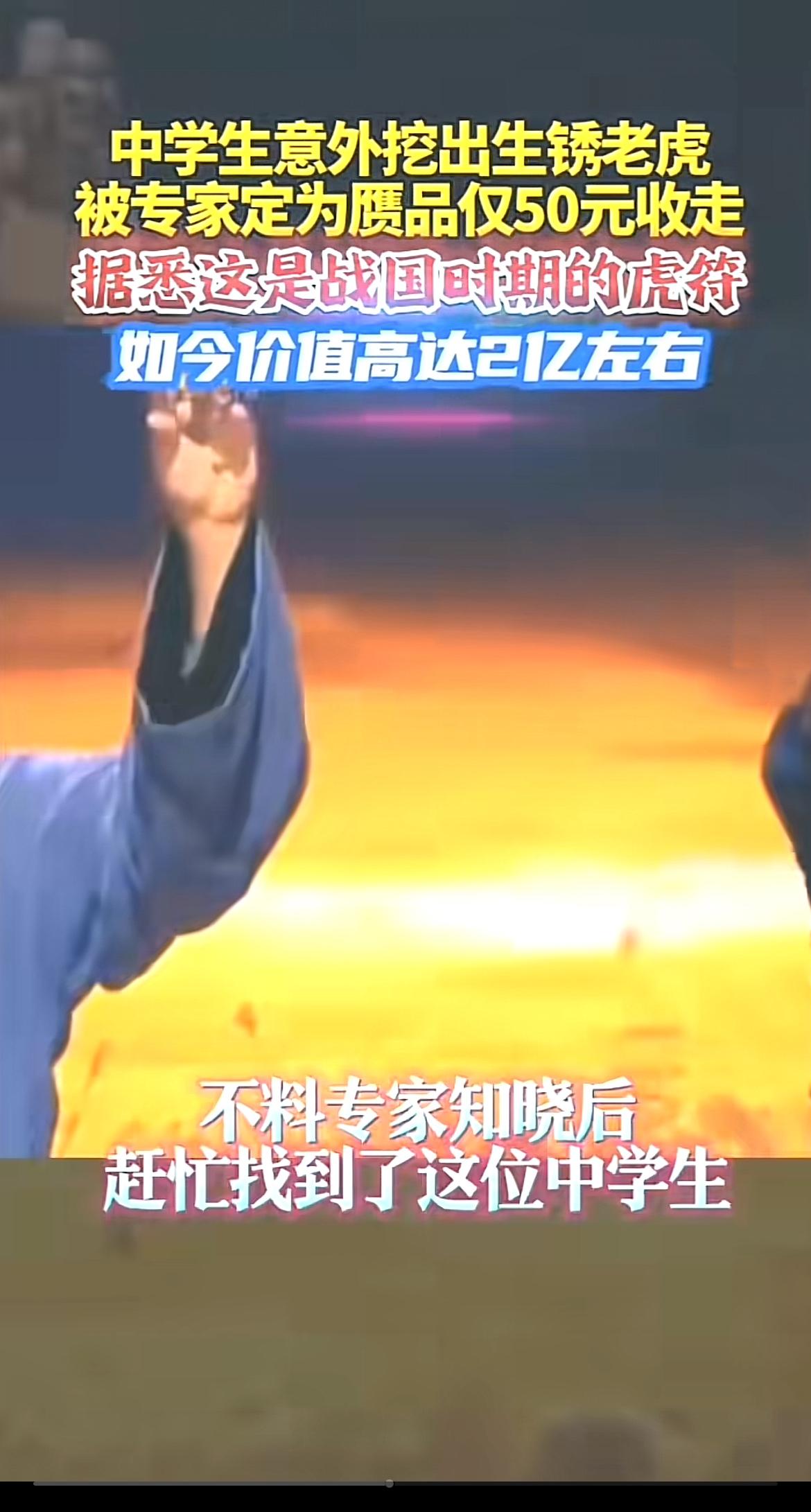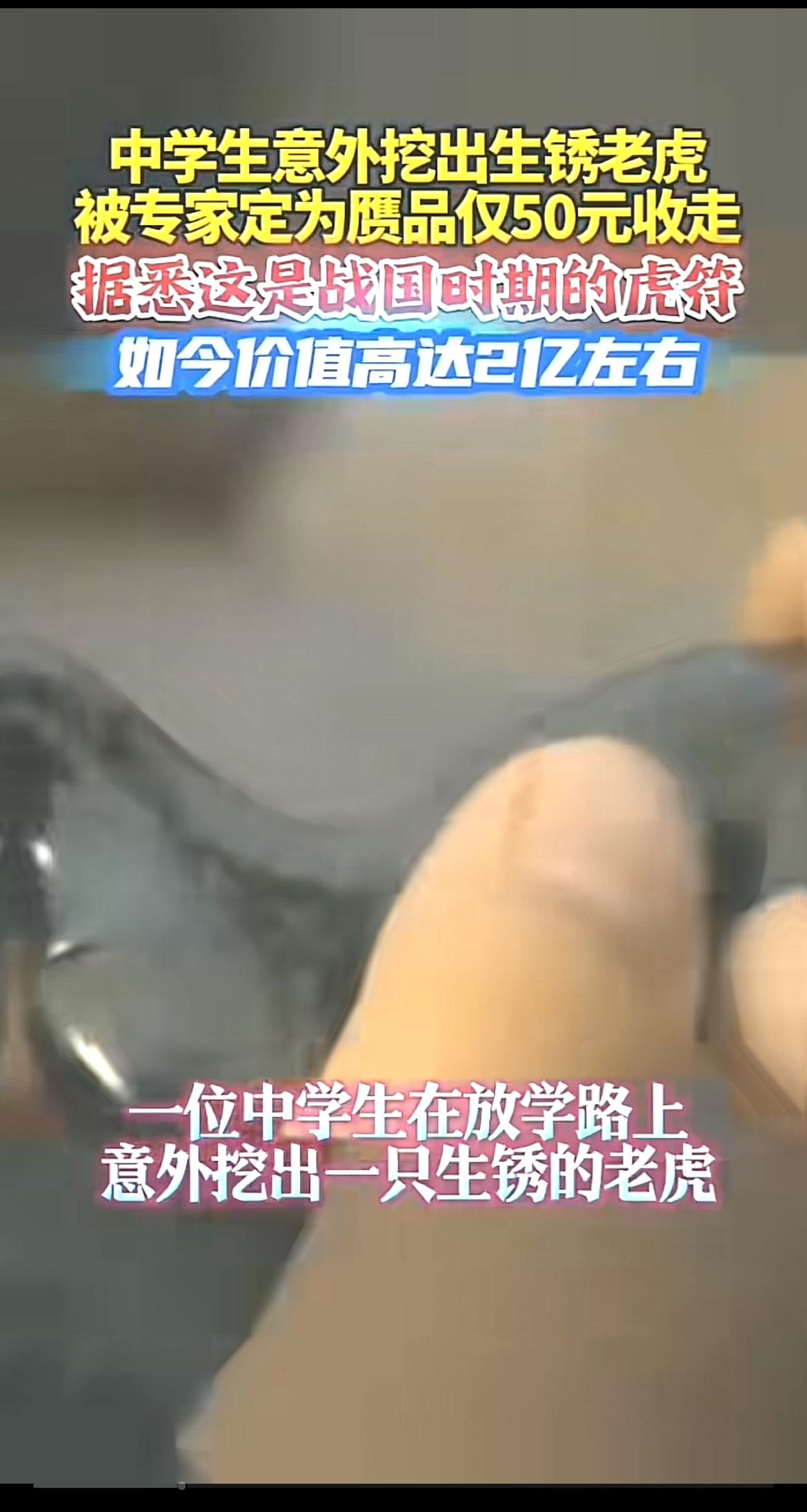 1975年,陕西西安郊区北沈家桥村的中学生杨东锋,因父母身体不好,代表全家出工平整土地。他和妹妹干活时,妹妹发现一处烂泥地里有东西,杨东锋扒拉后挖出个烂陶罐,里面掉出个锈迹斑斑像老虎造型的铜片,妹妹拿去当玩具玩。 三年后,铜片上的锈脱落,露出有文字且能分开的样子,看着很有年代感。杨东锋带它去鉴定,专家却认定是赝品,花50元收走。后来才发现这可能是价值2亿的宝贝。只能说当时专家看走眼,也怪那锈太能“伪装”,不然这中学生说不定能因此改变命运!