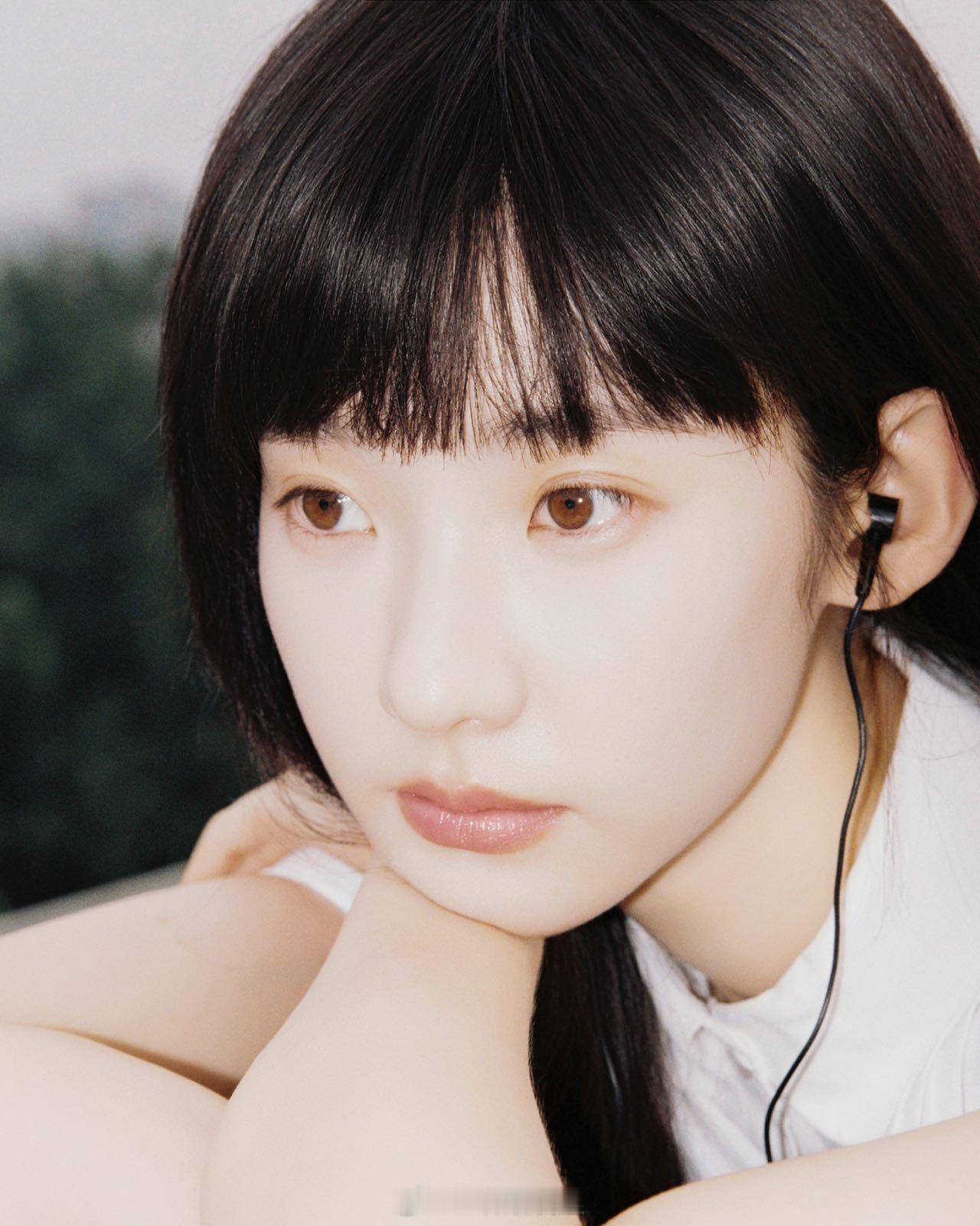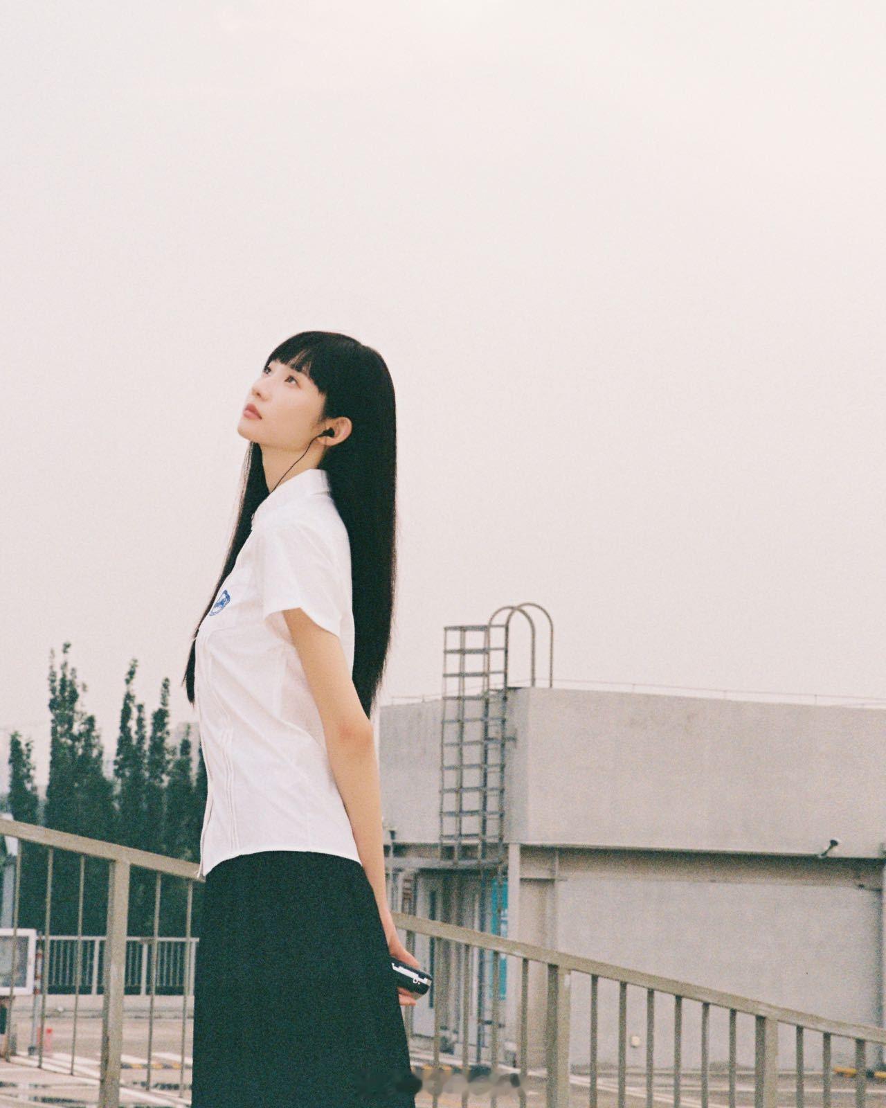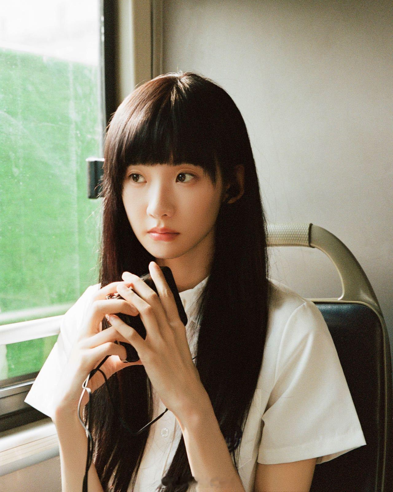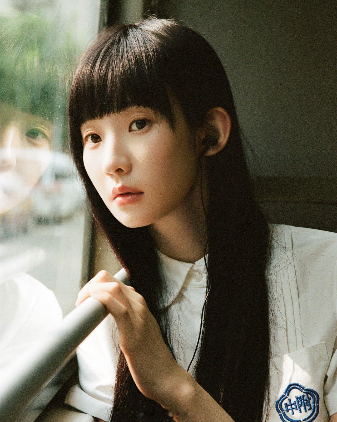 白色校服衬衫+黑长直真的太杀我了, 像从书页里走出来的人物。她侧头望向窗外,耳机里流淌着旋律,眼神里有等待也有告别——画面里全是青春的遗憾与温柔。