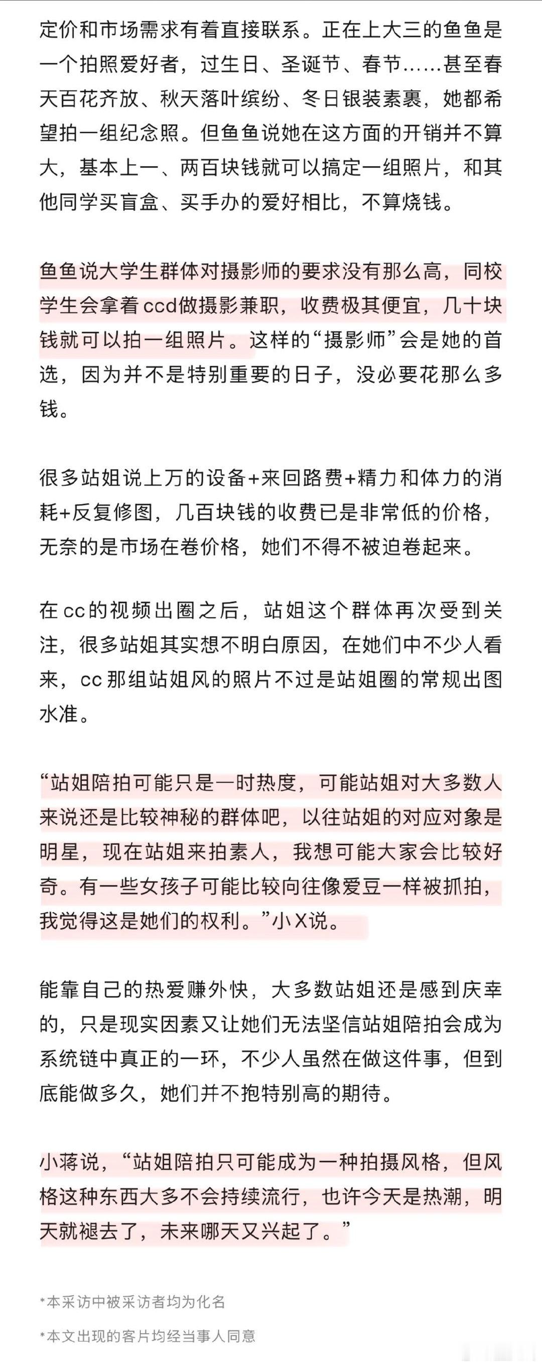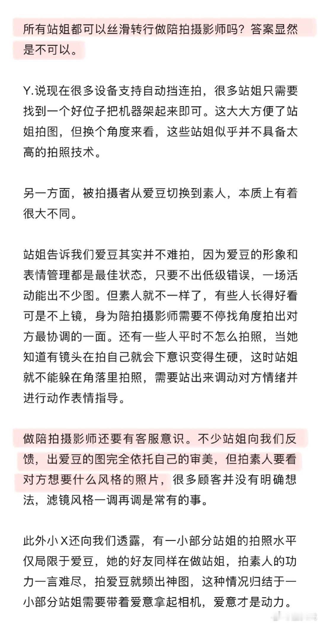 并非所有站姐都能“丝滑转行”。爱豆拍图容错率高,而素人常面临不上镜、动作僵硬的问题,需站姐引导,部分仅靠爱意发电拍爱豆的站姐,拍素人时容易翻车。收费层面的矛盾更突出:站姐带着上万设备、耗费体力与精力,定价覆盖平价到中高端,但市场上有几十元的学生ccd兼职分流需求,让她们被迫卷入价格战。