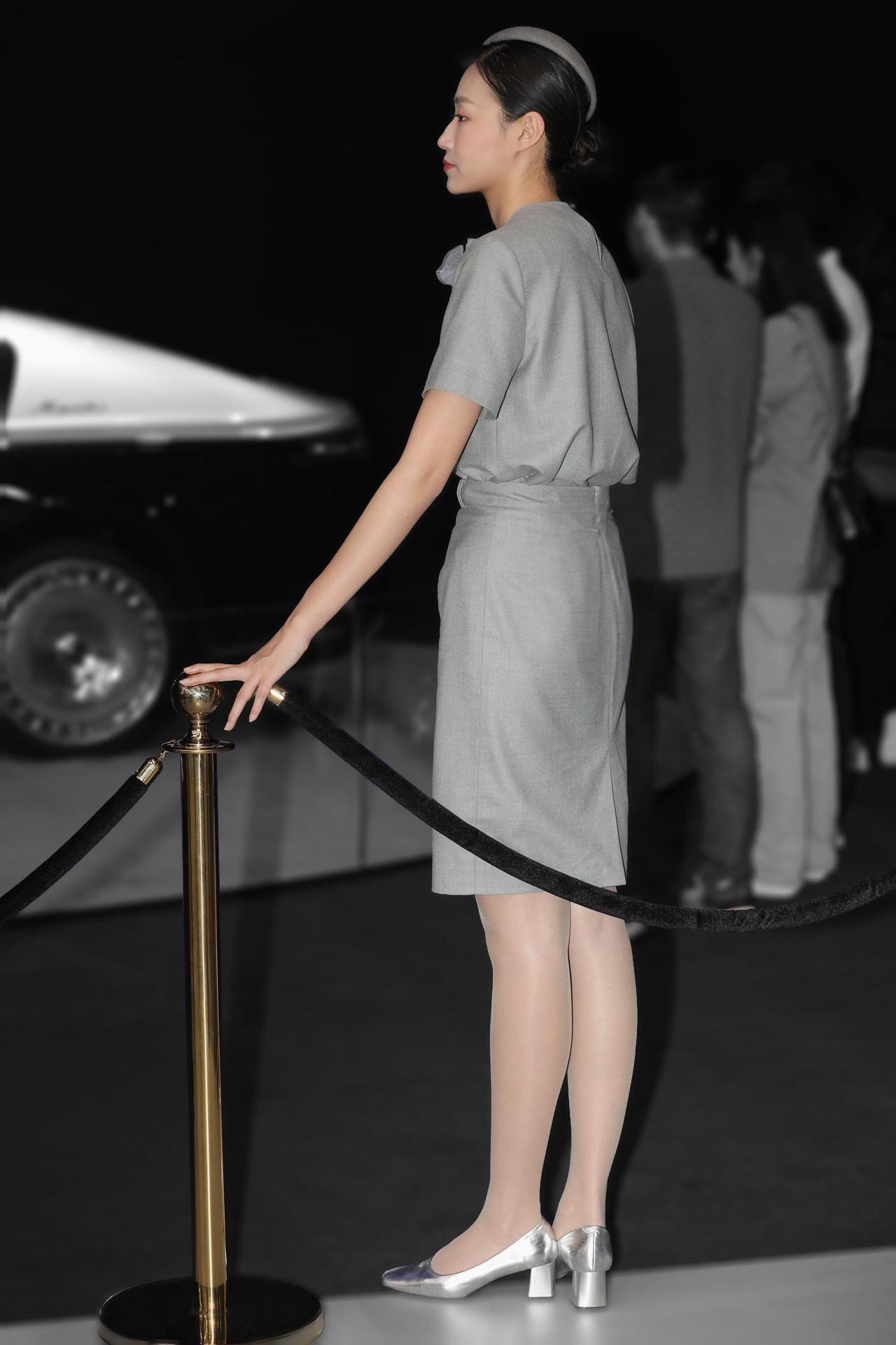 穿丝袜的礼仪小姐,这气质真绝了!烟灰色的职业装怎么样?