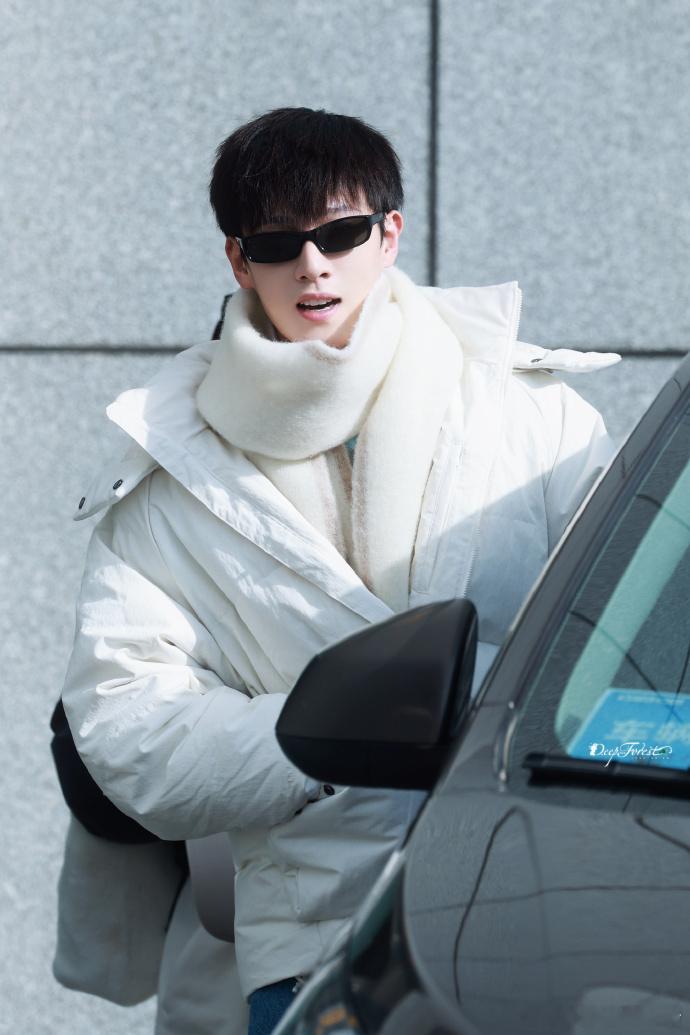 跑男新疆录制见!李昀锐从南京飞抵喀什,白羽绒服配毛绒帽像 “白团子”,主动踮脚互动超圈粉。