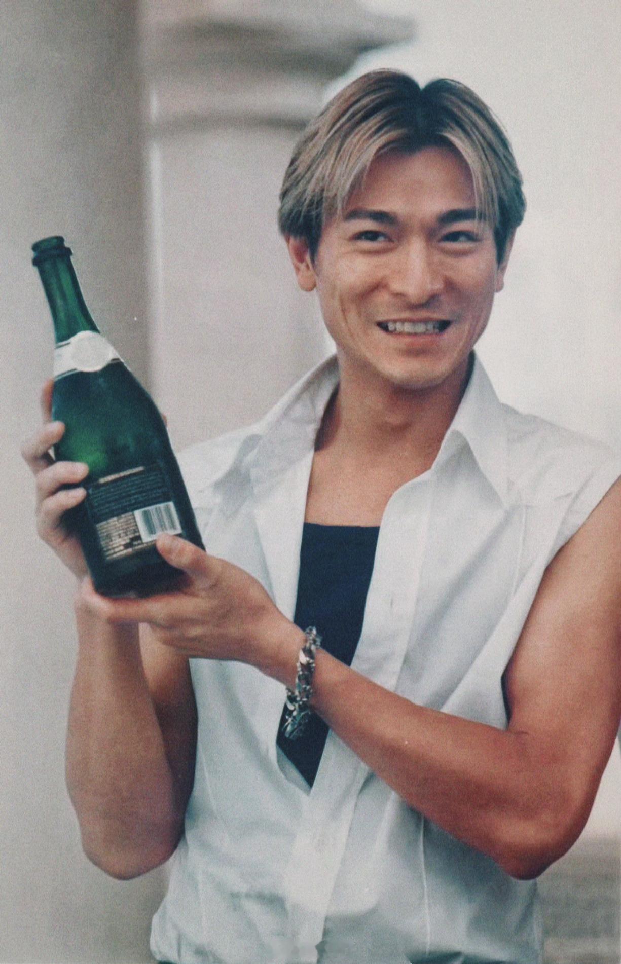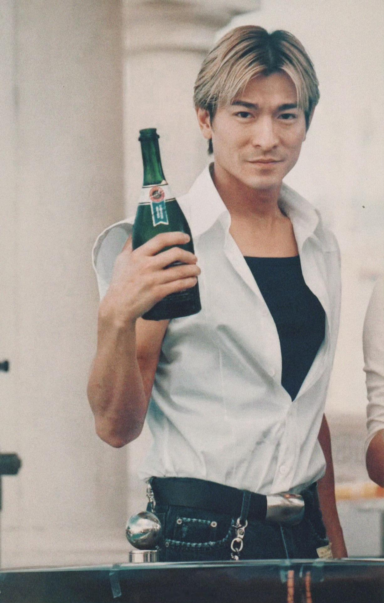 大盗彼得张即将亮相大银幕,开香槟🍾庆祝一下——1999年9月,刘德华 出席【暗战】首映记者会,时髦的金发潮男,华仔的手链好酷!这也是华仔的经典影帝之作。