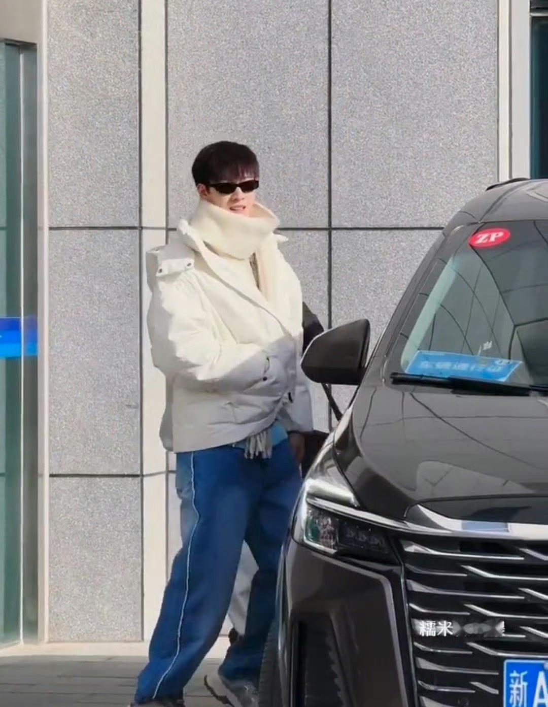 李昀锐今天, 终于归队《奔跑吧》新疆录制! 他一大早从南京飞抵喀什, 身穿