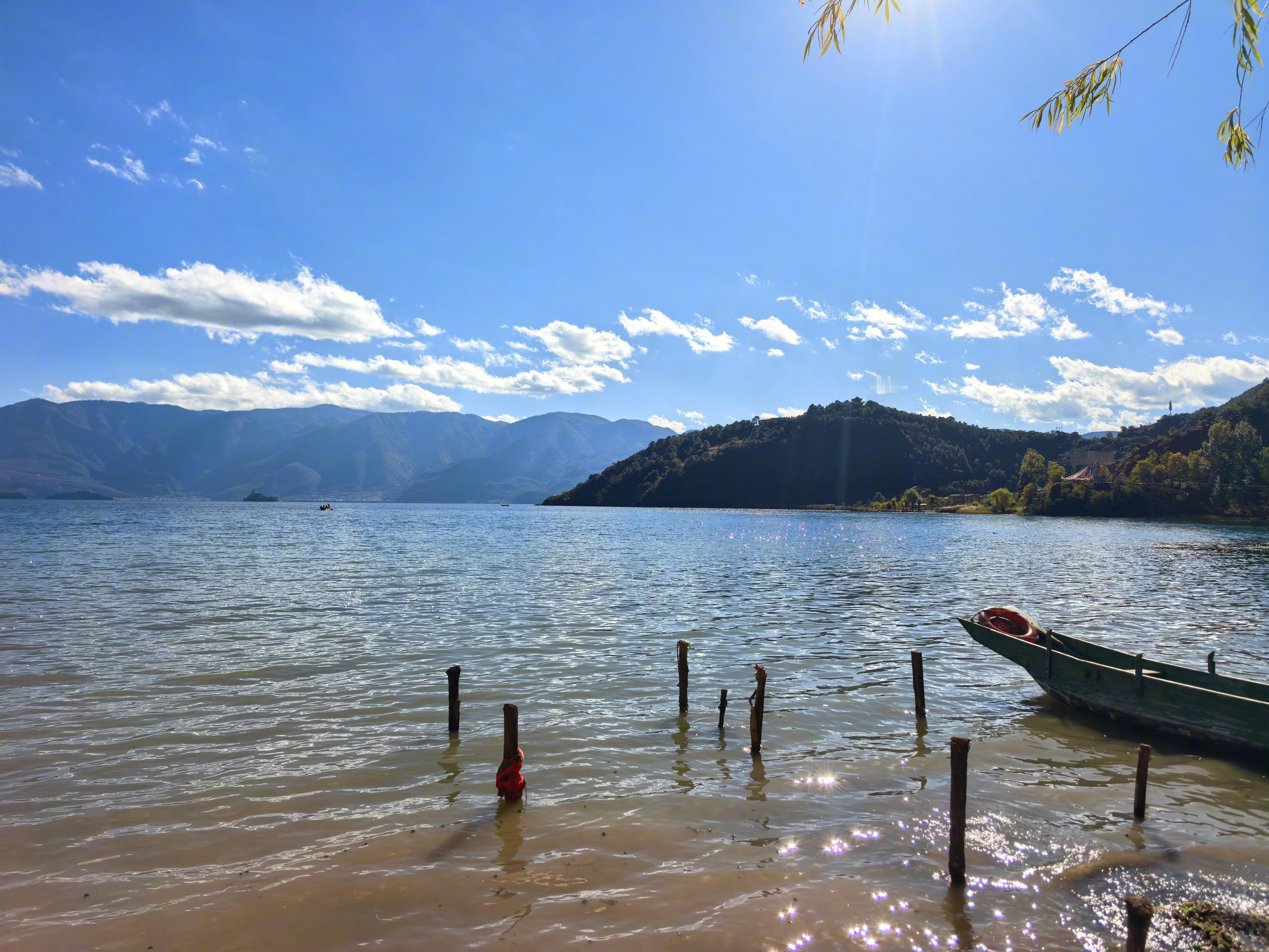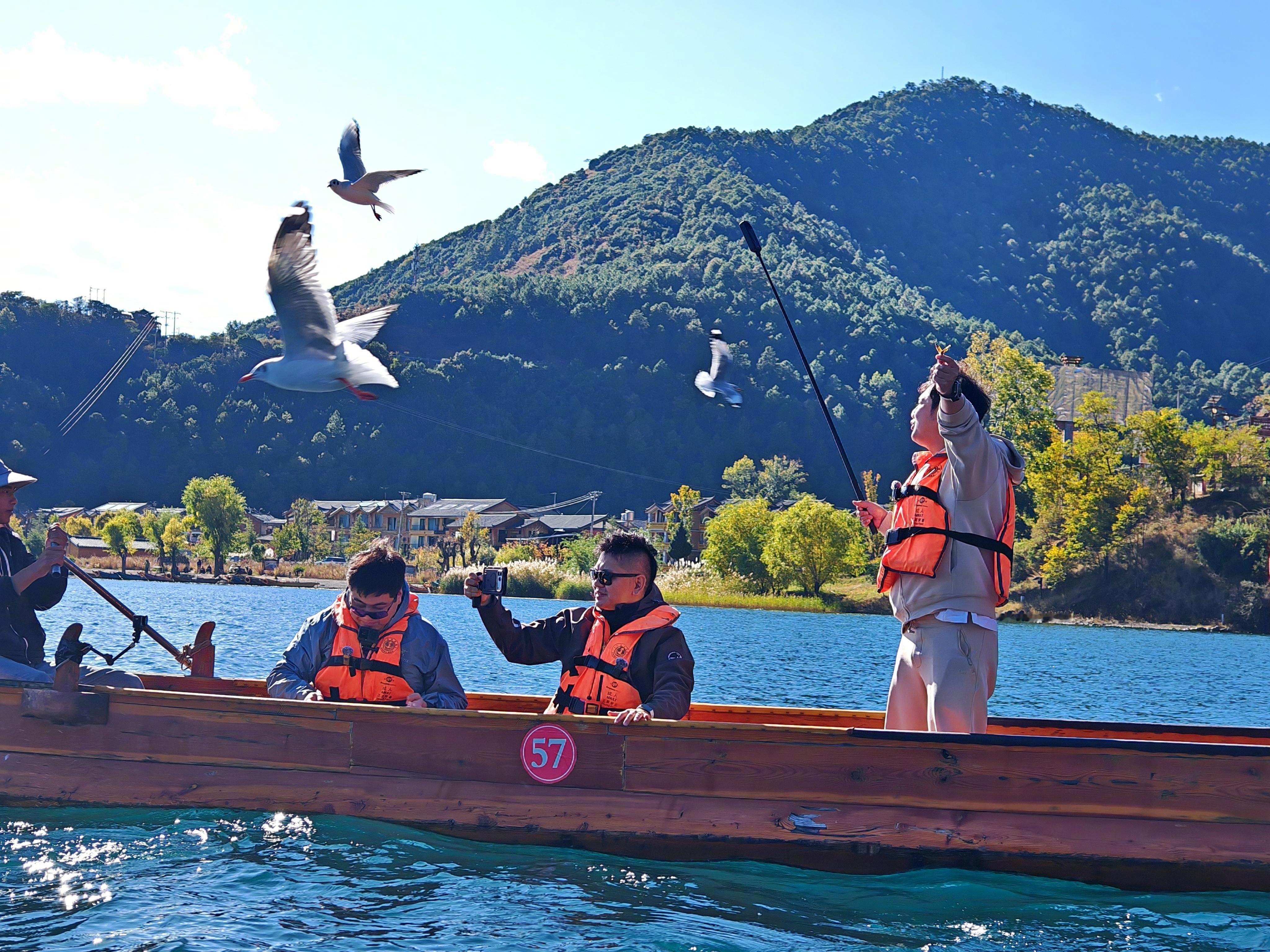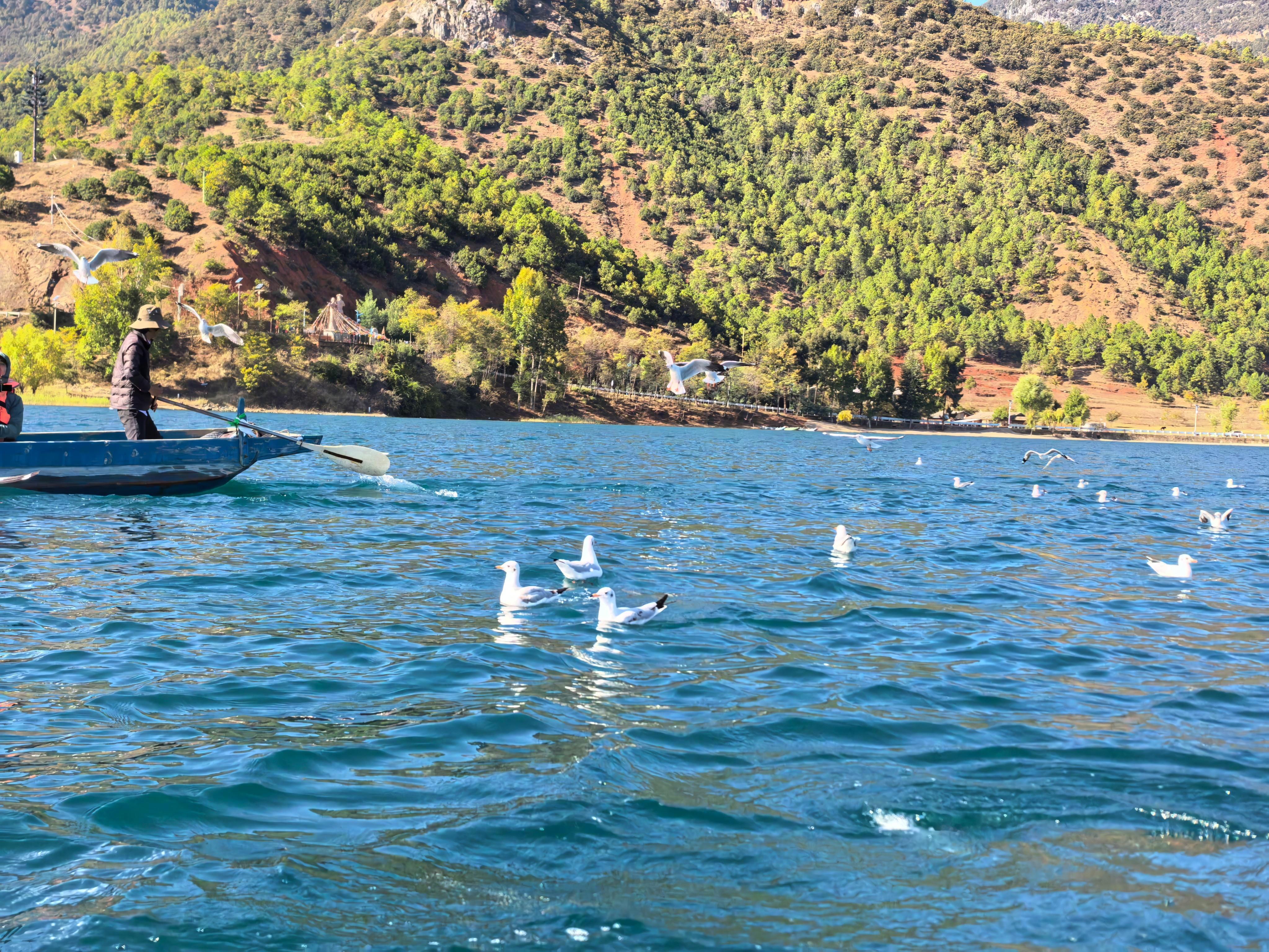 今天在泸沽湖边喂海鸥,泛舟泸沽湖,温度舒服,的确好地方啊!图8图9就是镜头前的你,这个花就是大家都听说过的:水性杨花。