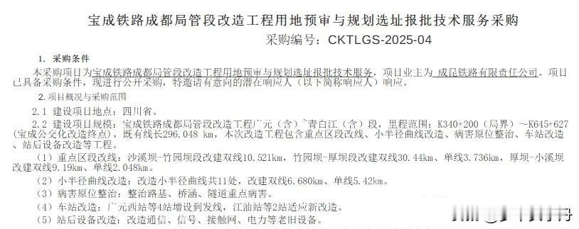 好消息!宝成铁路成都局管段改造工程正式启动前期规划论证,标志着这条连通西南与西北