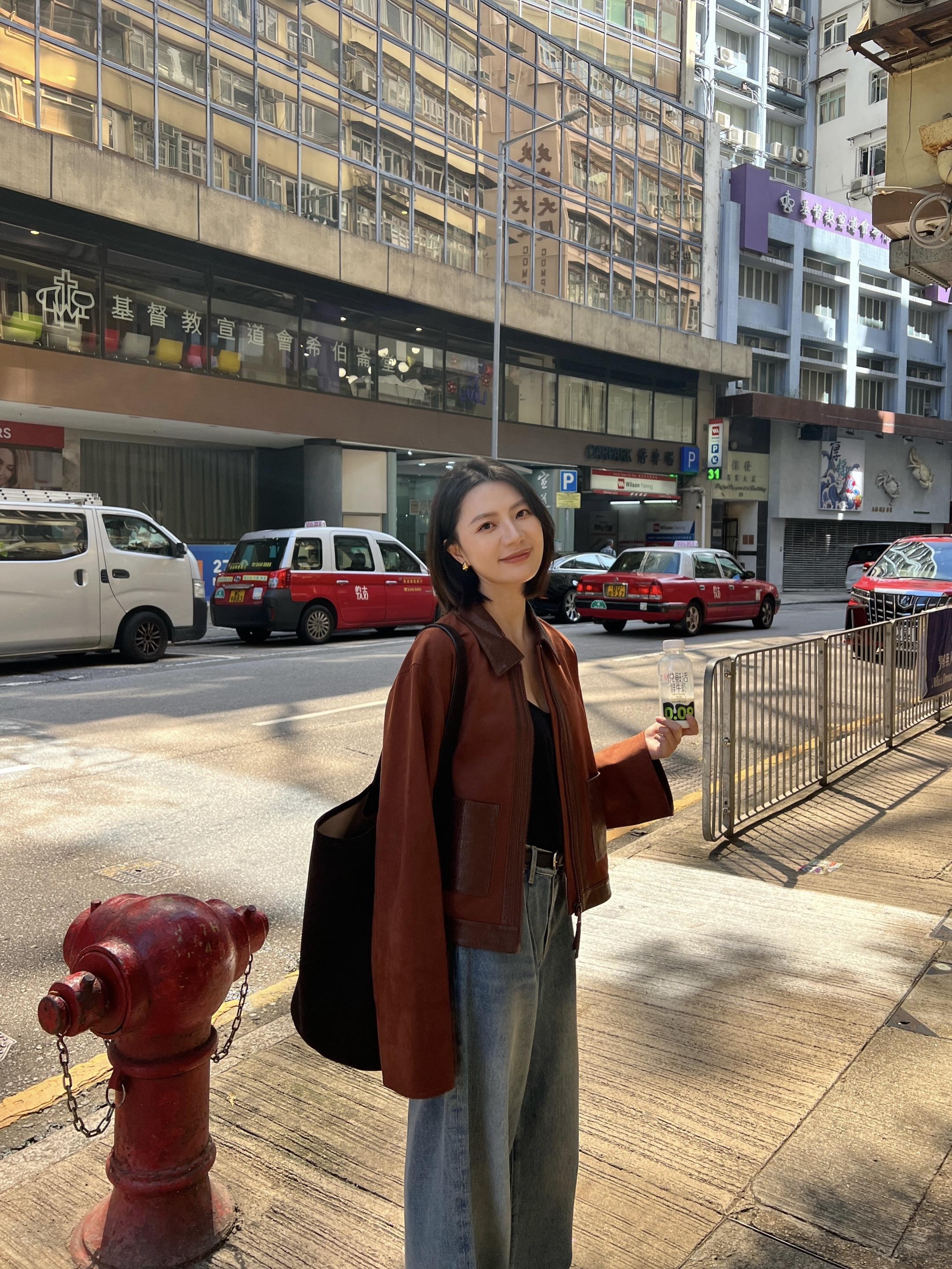 这家新中式茶馆也太会拿捏氛围了!亮面黑外套+黑丝的搭配,又酷又撩,露肩设计刚好中