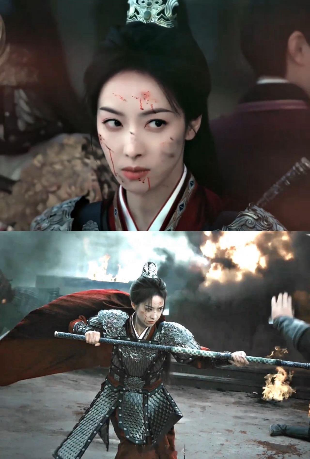 这段沙场打戏绝对是高光名场面! 本就有深厚的舞蹈功底加持,一上战场打戏干脆利落,步步不退。这样的战损女将军直接把我看燃了!