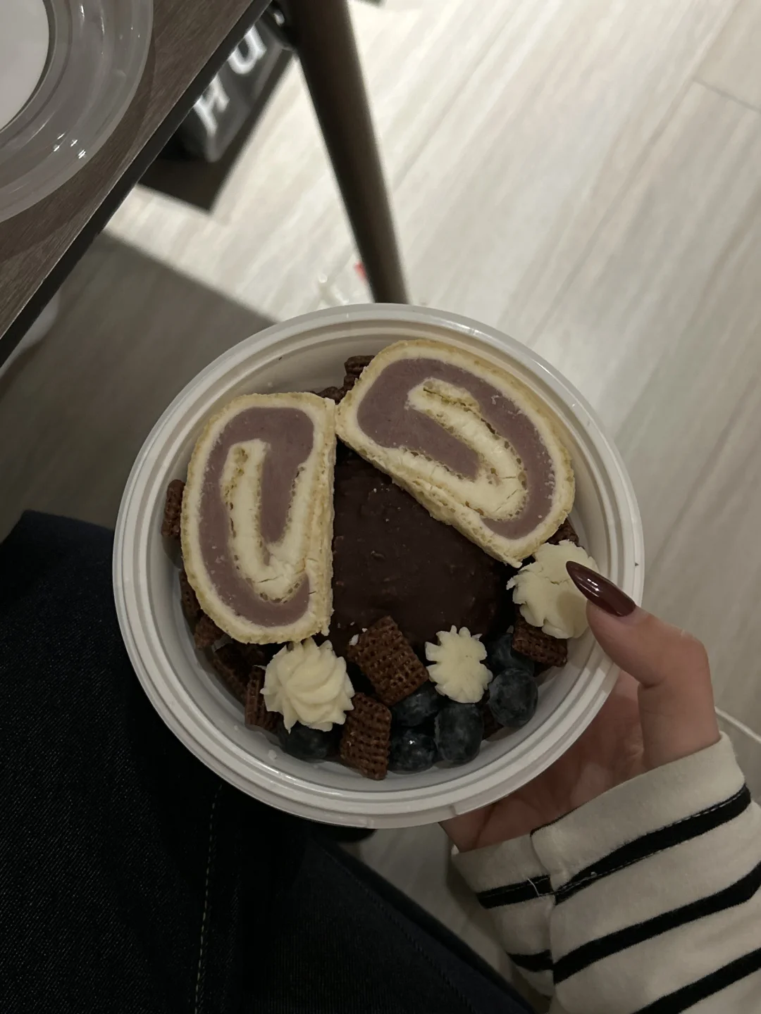最近一直在偷懒…… bygl 去年吃过 心心念念 依旧金枪鱼溏心蛋虾仁三明治 cucurucu 打抛饭脑袋走到哪都要点 这家还挺对胃口[拔草R] 小山堂 本来计划没打算点他家 但突然想喝热的 这个板栗糯糯乳也太好喝了[抓狂R] 栗其 粉碎冰珍珠奶茶 还阔以 nibu 对奶皮子很感兴趣 黑巧脆皮可可酸奶碗太完美了…… 闹now 紫糯米甜白酒玫瑰吐司 虽然隔了一天才打开但还是很好吃