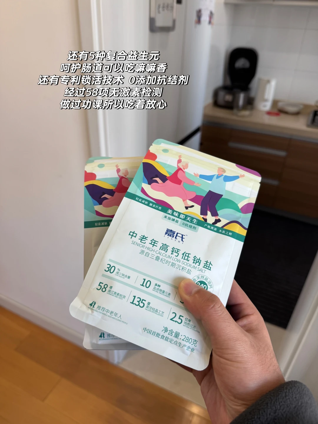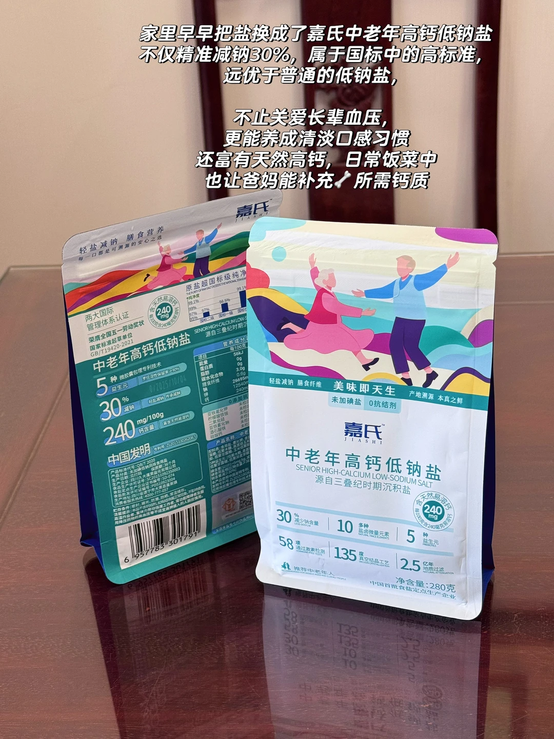 家里早早把盐换成了嘉氏中老年高钙低钠盐