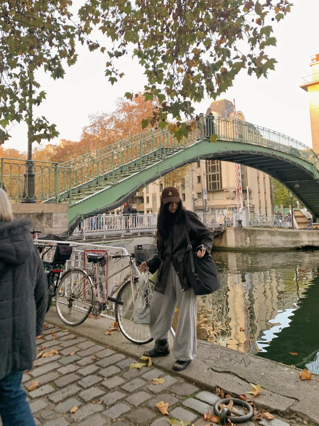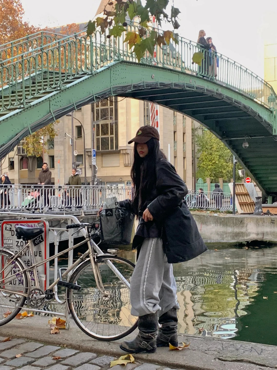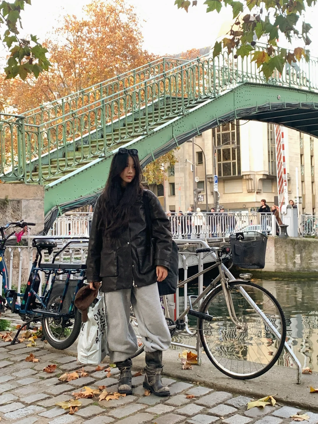在巴黎就是这么拍都好看 整个城市都太chill了 这次选择了秋冬氛围感街头穿搭 低饱和深色系 廓形且松弛的皮衣外套 随意堆叠的皮靴配上宽松运动裤 正是Softcore柔系美式的赶脚