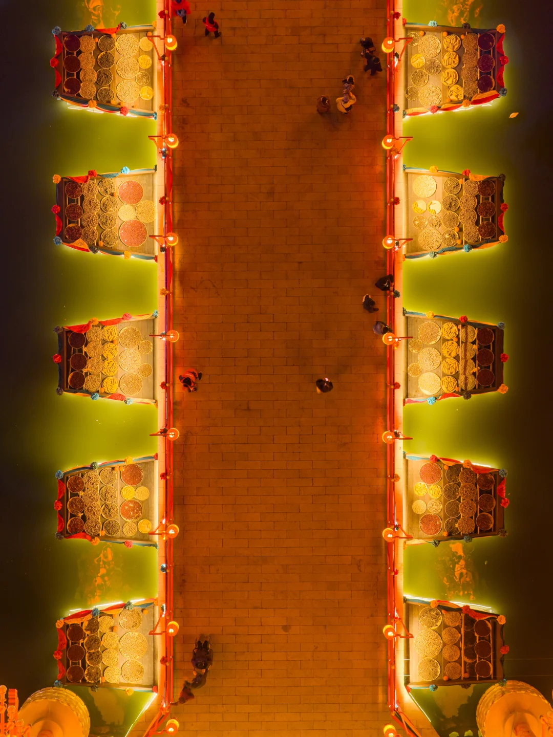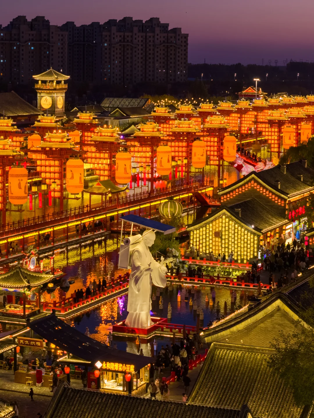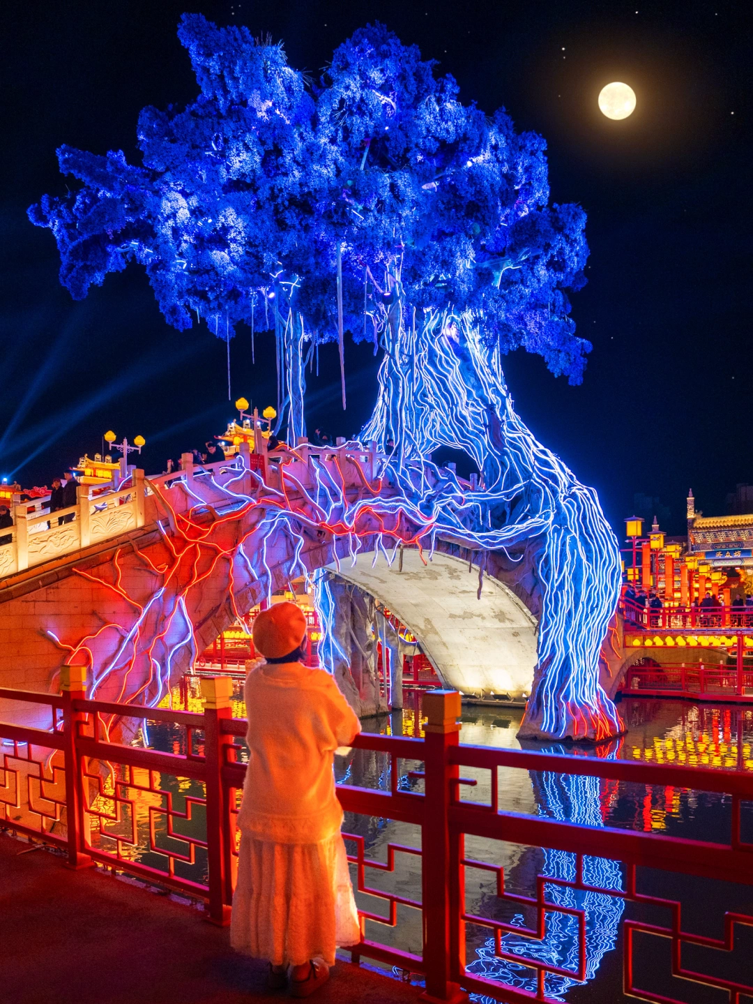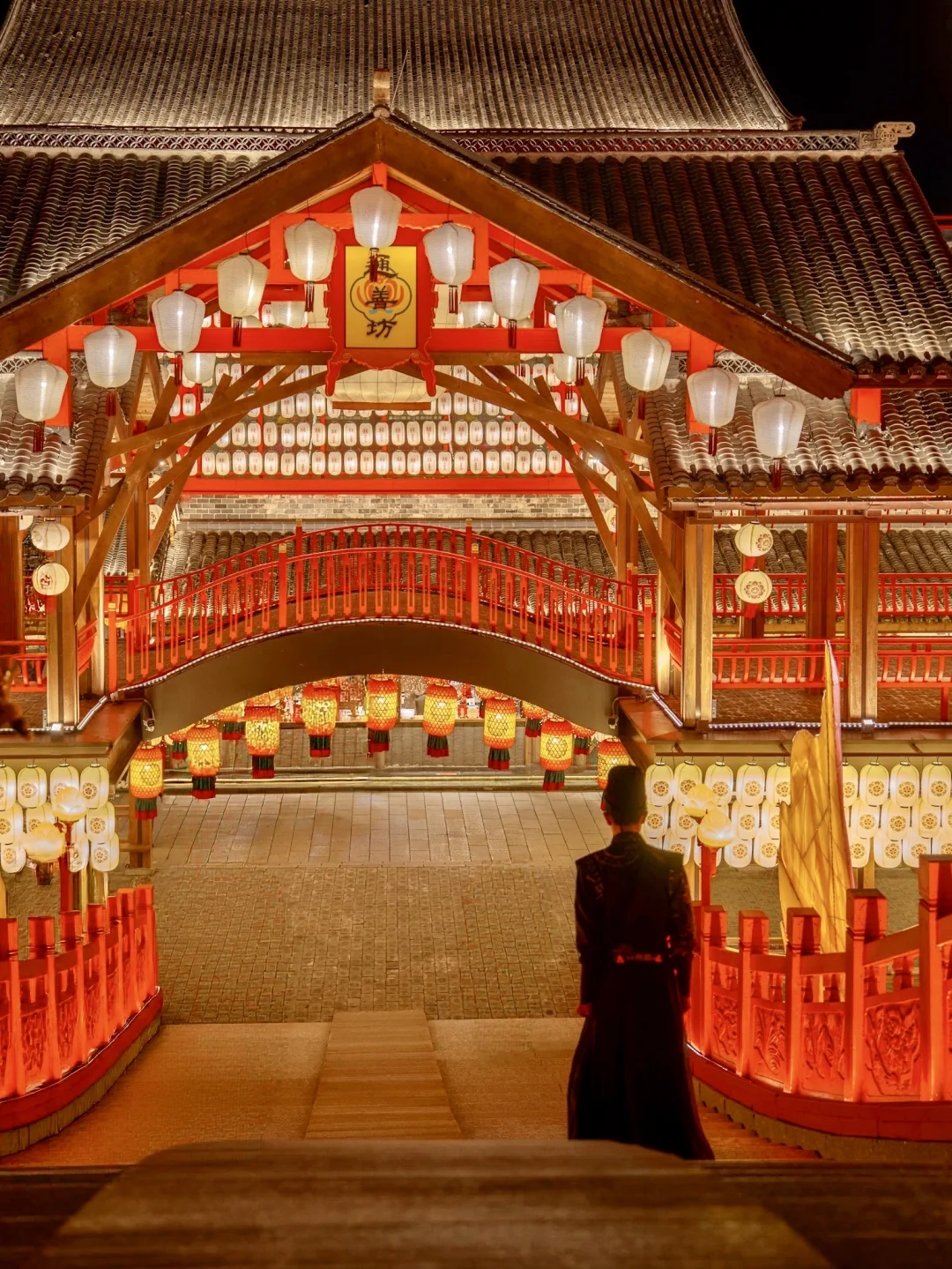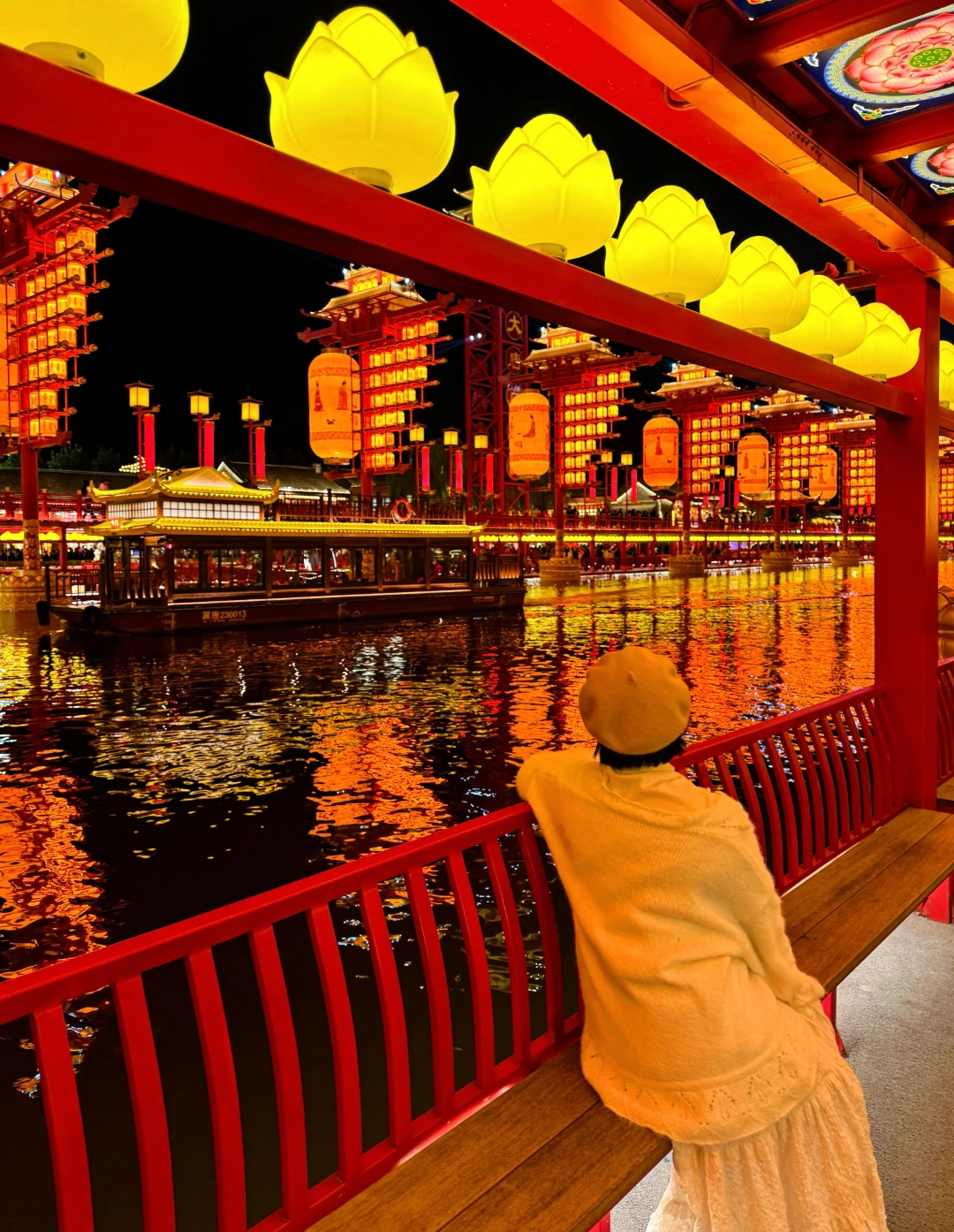 灯影投在河面上,碎成一片流动的金波,走在桥边像踩进了古画里。