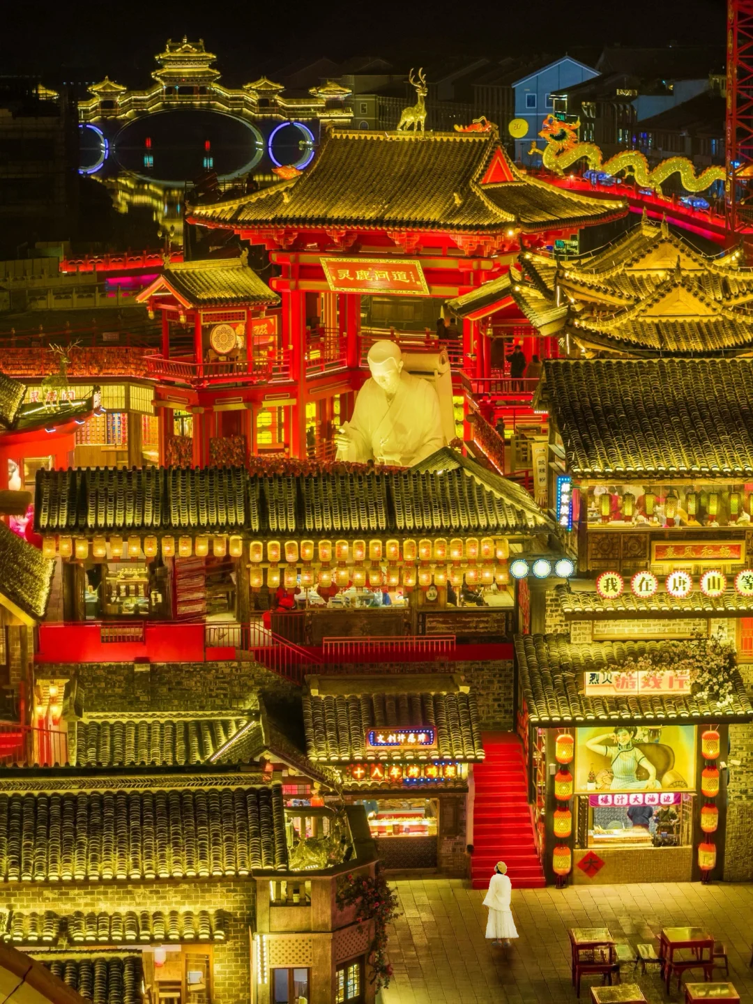夜幕一垂,沿街的红灯笼就次第醒了,晕染着黛瓦飞檐的轮廓。