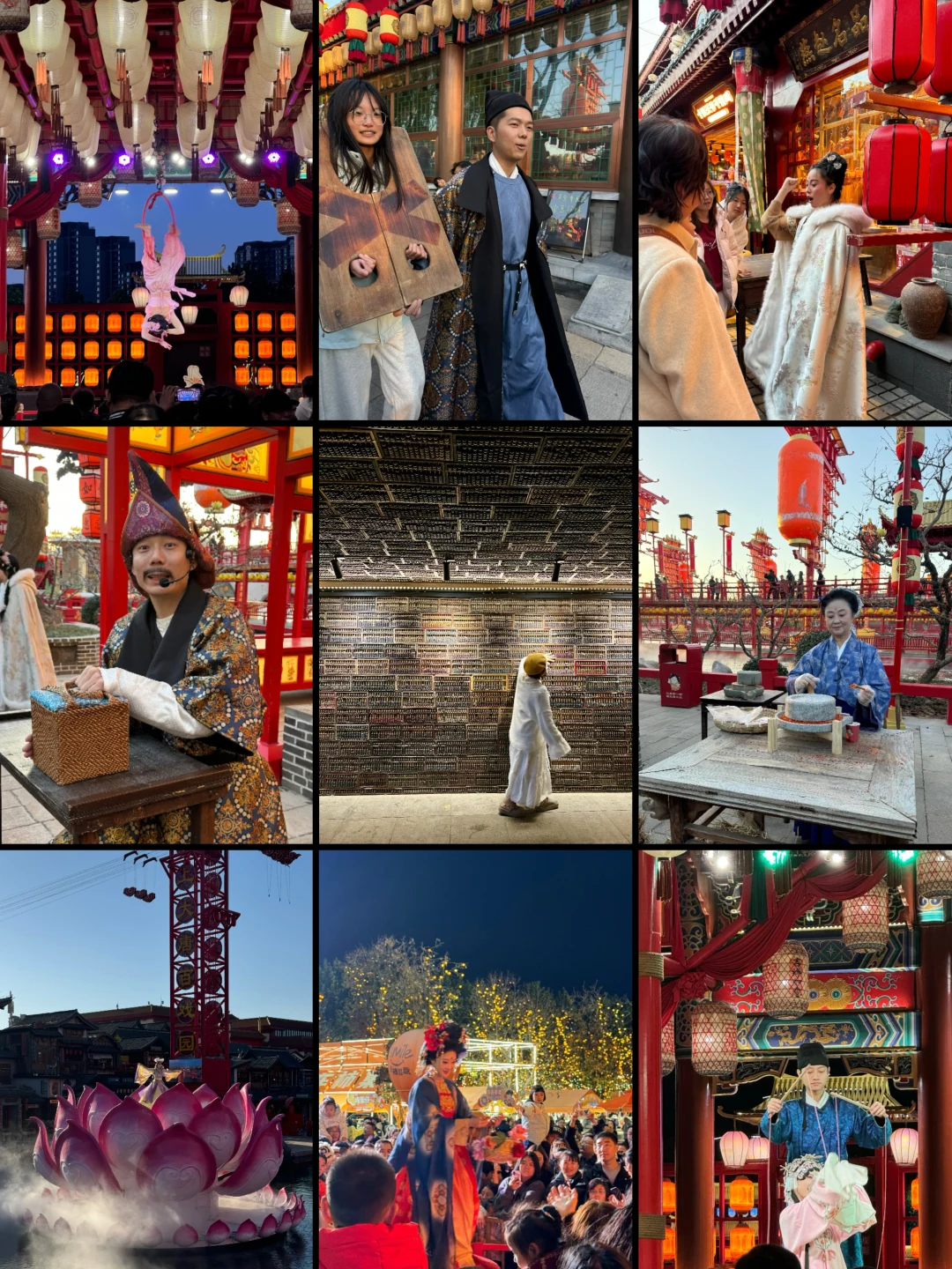 街边的摊贩,都打扮成了古代人的模样叫卖着互动,身临其境般体验。