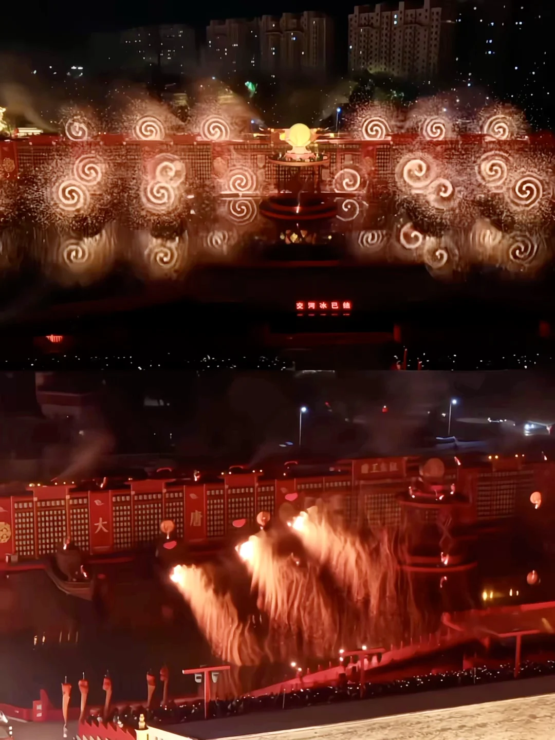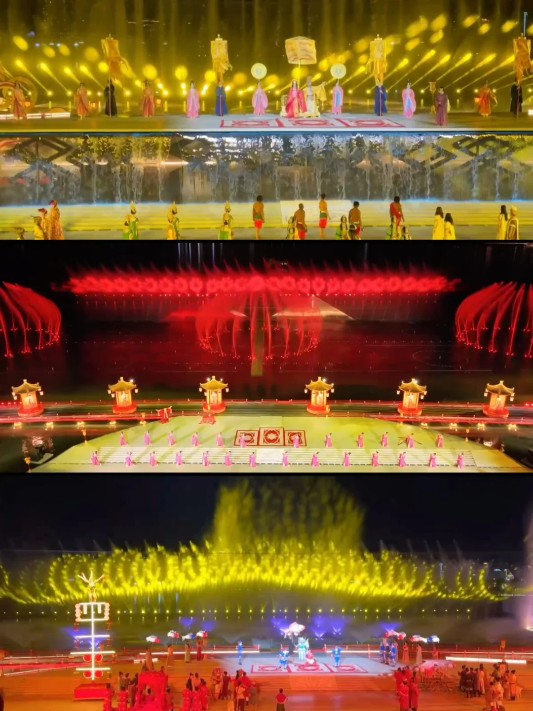 2️⃣大唐曹妃河头老街出新的大型水舞实景剧,歌舞温柔又灵动,喷泉和光影交织结合默契。